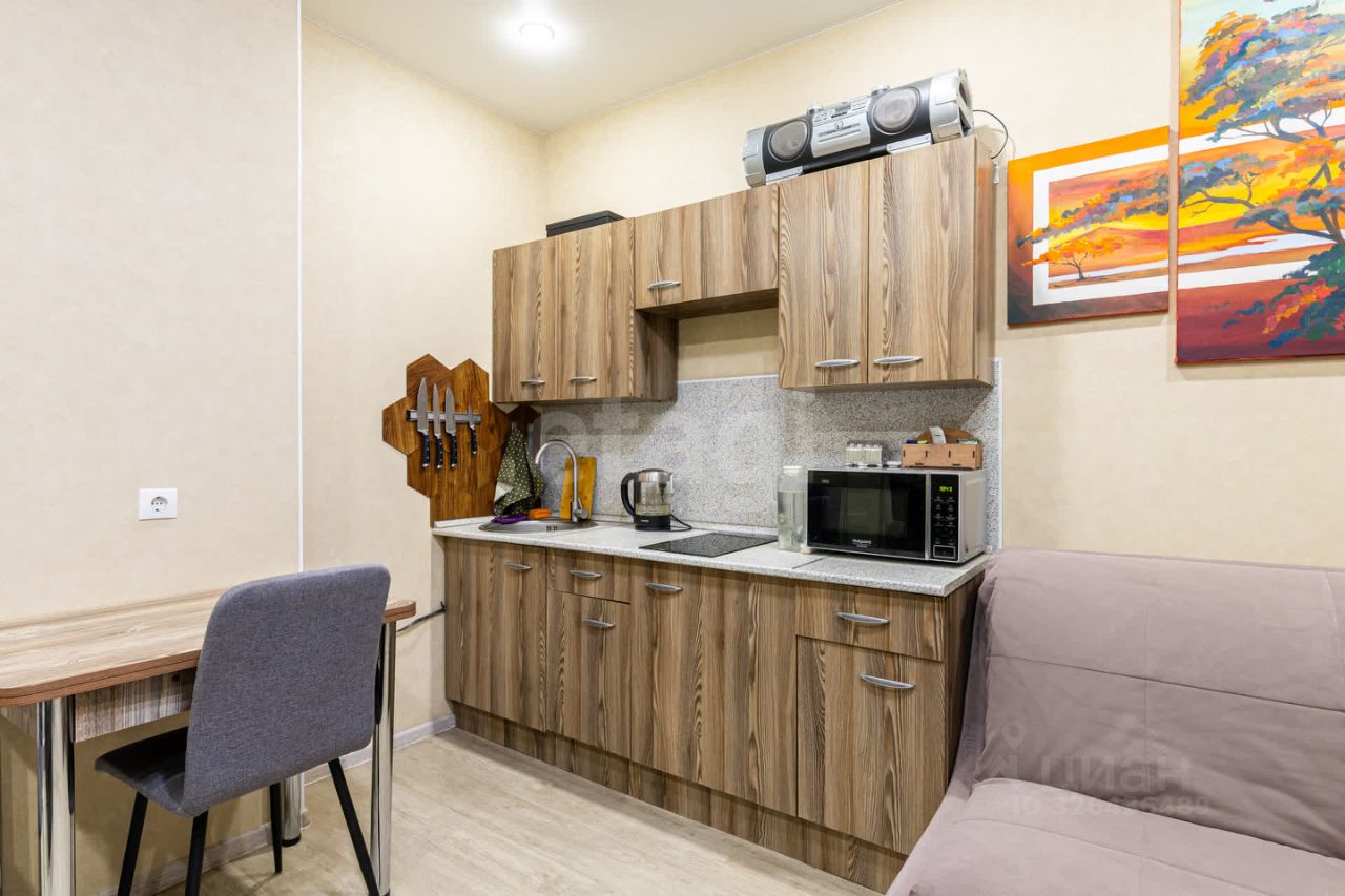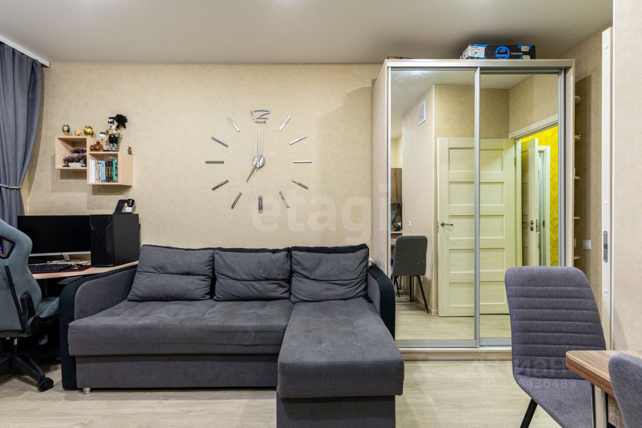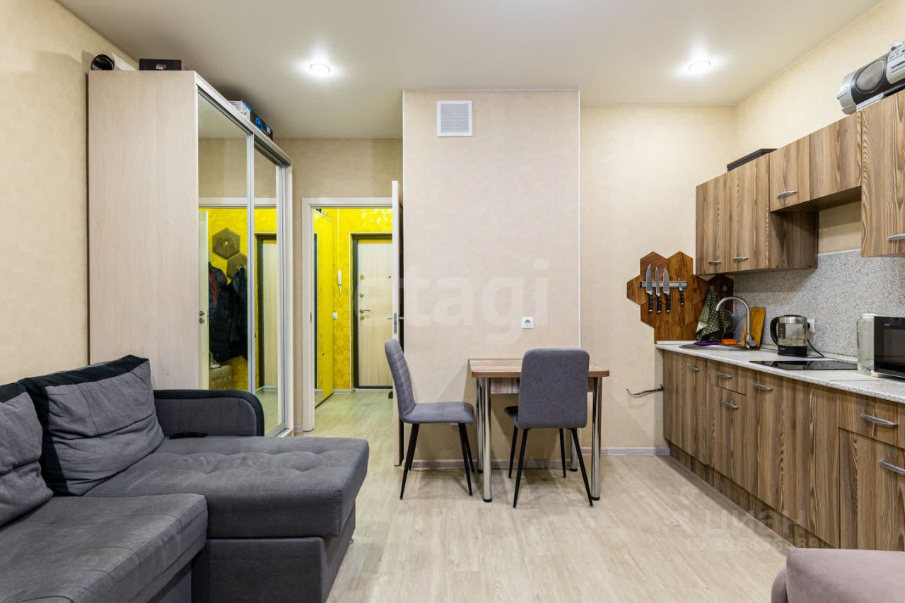 Продается современная квартира-студия площадью 26,1 кв. м на 4 этаже монолитного дома, сданного в 2017 году. Объект отличается рациональной планировкой с четким зонированием: просторная жилая комната 18,9 кв. м, отдельная прихожая и совмещенный санузел. Дополнительное пространство предоставляет застекленный и утепленный балкон. В квартире выполнен качественный ремонт с практичными и долговечными материалами: на стенах — износостойкие обои, на полу — кварц-винил, установлены натяжные потолки. Возможна передача покупателю мебели и бытовой техники.