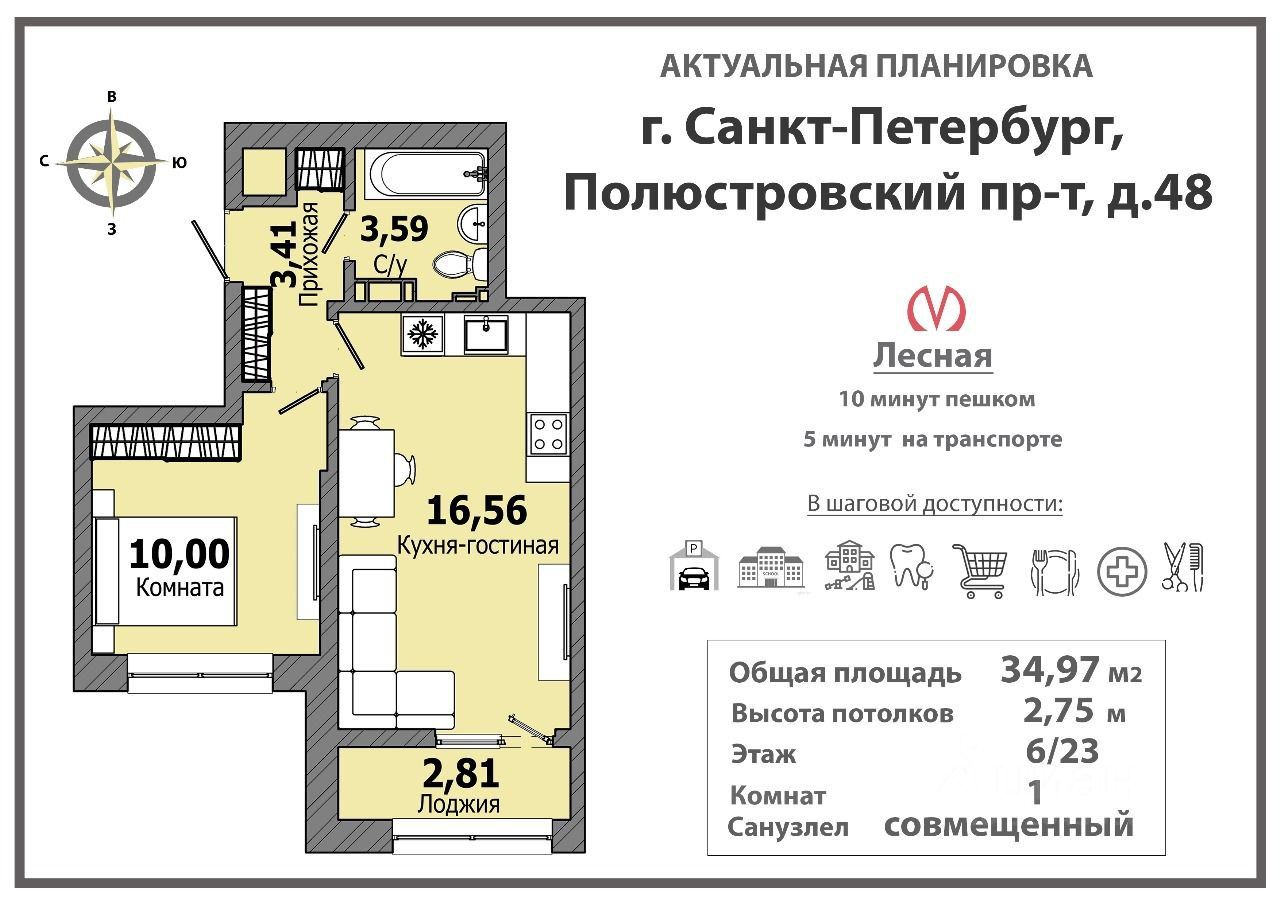 Инфраструктура Калининский район - это комфортная жизнь в городе с развитой инфраструктурой: В радиусе до 12 км - 10 детских садов и 7 школ Поблизости - магазины, аптеки, медицинские центры В 10 минутах - ТРК Европолис В 15 минутах пешком - парк Лесотехнической академии и Ботанический сад им. С.М. Кирова Ж/Д станция Кушелевка - в пешей доступности Эта квартира - отличный вариант для комфортной жизни или инвестиций в один из самых востребованных районов Санкт-Петербурга!