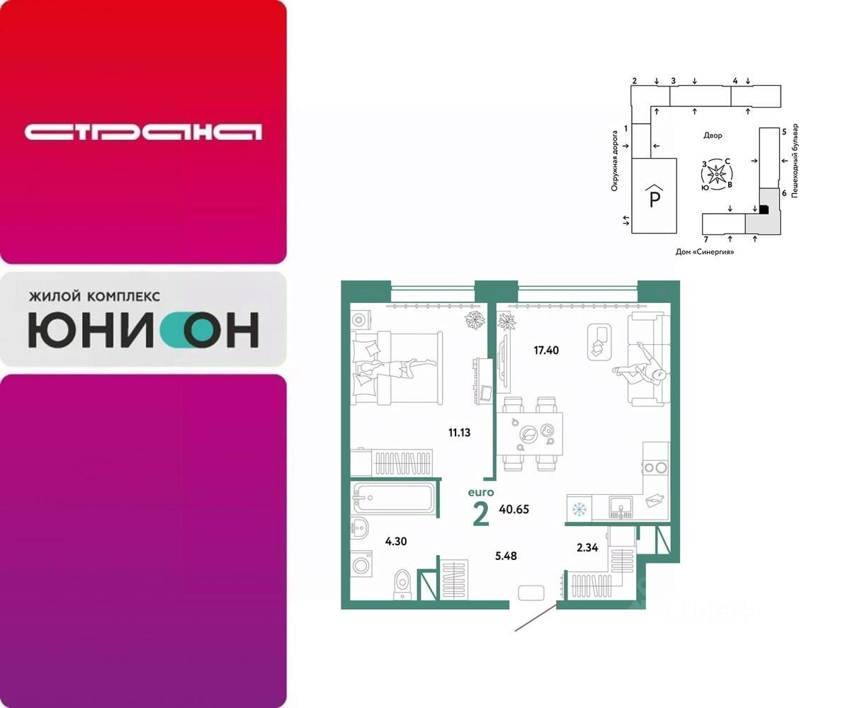 Продается 2комнатная квартира на 13 этаже от застройщика Страна Девелопмент. Площадь квартиры 40,65 кв. м.