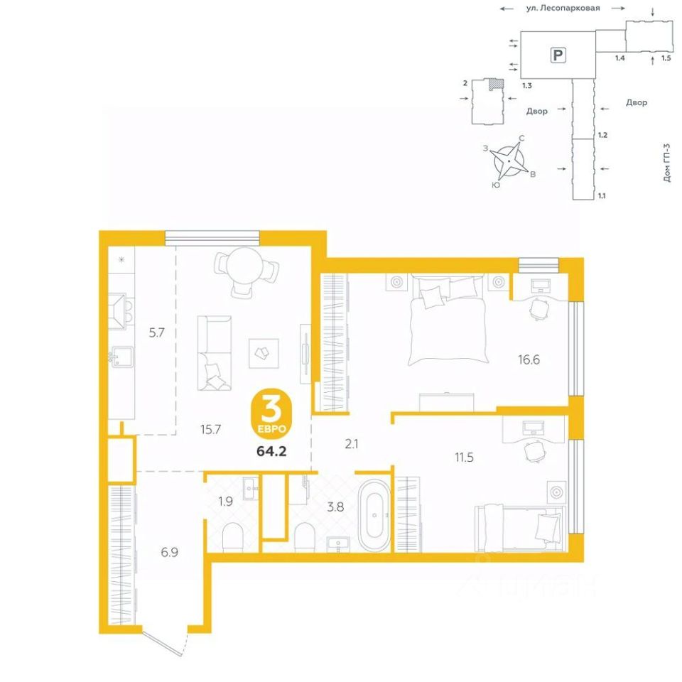 продам 2-к, Лесопарковая, 209 780 000 ₽