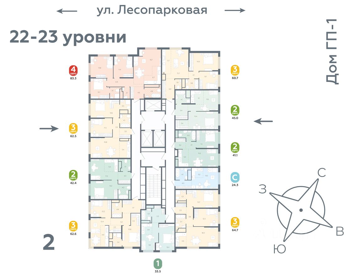 Квартира располагается в ГК ''Чистые Пруды'' от ''Паритет девелопмент''. Это флагманский проект компании в Тюмени. Расположение вдали от шумных улиц и оживленного центра создает ощущение жизни на природе и окружает тишиной и спокойствием. Есть вся необходимая социальная и коммерческая инфраструктура: магазины и сфера услуг на первых этажах. Школы, сады, поликлиника, парки в шаговой доступности. Квартал строится в районе Новой Лесобазы. Рядом выезд на объездную, что существенно экономит время. Поездка до центра города на автомобиле занимает 15-20 минут. Городские кварталы ''Чистые Пруды''сформирован из домов переменной этажности и многоуровневых паркингов. Ввод 1 очереди строительства запланирован на II кв. 2028 года.