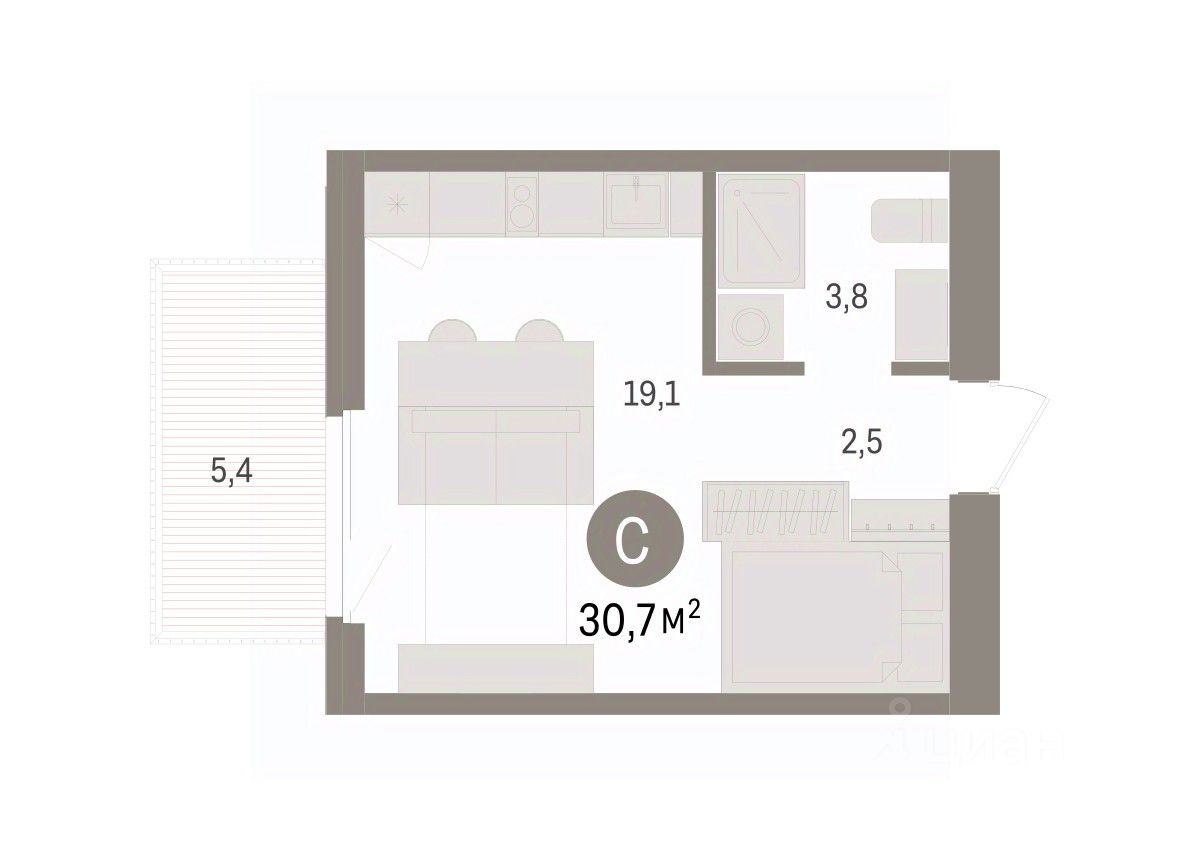 Студия в жилом районе ''Пшеница''. Особенности планировки: балкон, предчистовая отделка. квартиры в нашей базе: ПШЦ05.2-Ж5.5.6.