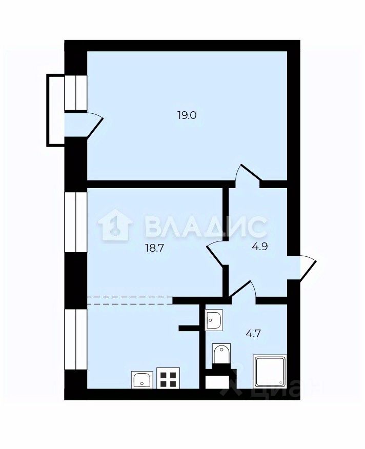 О КВАРТИРЕ: Общая площадь составляет 47.3 кв. м, из которых 19 кв. м - жилая Окна выходят на улицу, за счёт чего в квартире много светаВыполнен ремонт, который позволяет сразу же въехать и житьПросторная кухня-гостиная площадью 19,2 кв.