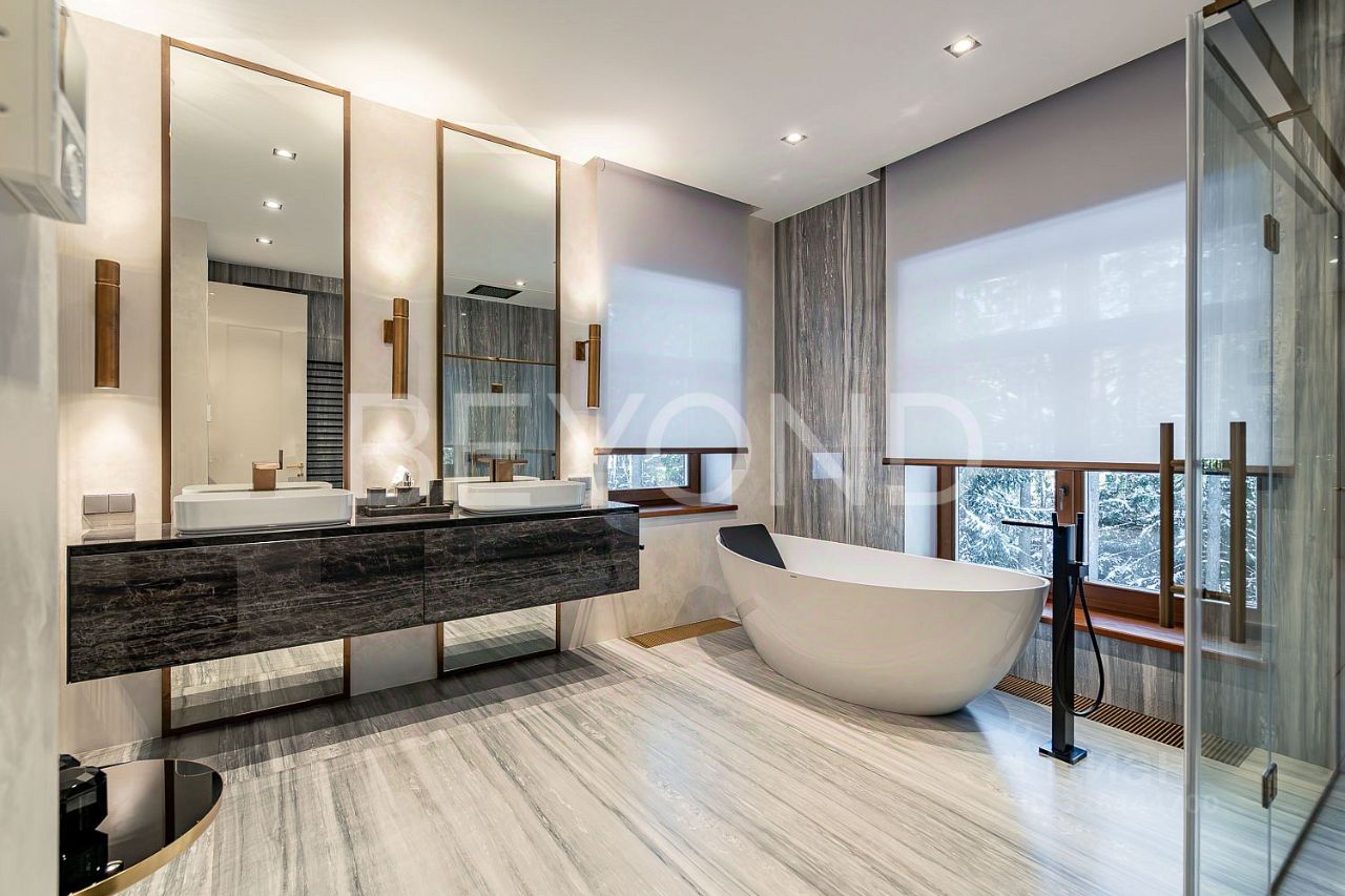 Продаётся изысканный загородный дом площадью 410 м², созданный студией дизайна Art Spice. Дом, в котором каждая деталь отражает современные эстетические принципы — от архитектуры до инженерных решений. Объект полностью готов к проживанию: атмосфера, функциональность и продуманные сценарии жизни уже встроены в пространство. С первых шагов — прихожая с большой гардеробной зоной. Слева — кухня Snaidero с техникой Gaggenau — решение для тех, кто ценит безупречное качество и комфорт. Столовая с выходом на террасу, где организованы обеденная группа и лаундж-пространство. Гостиная с потолком стремящимся ввысь — центральная сцена дома. Панорамное остекление стирает границу между интерьером и садом, впуская свет и создавая ощущение открытости. Атмосферу дополняет дровяной камин Bordelet — акцент, который собирает всех вместе. На первом этаже также расположены кабинет и полноценная гостевая спальня. Второй этаж — приватное пространство с мастер-сьютом и двумя детскими. Тихая, продуманная зона, где каждый член семьи получает своё пространство. На участке — профессиональный ландшафт, хвойные деревья, детская площадка и ощущение настоящего загородного уединения. Коттеджный поселок в Репино ''Мои Пенаты'' находится в непосредственной близости от побережья Финского залива, при этом всего в получасе езды от города. В шаговой доступности развитая инфраструктура Курортного района: супермаркет, ресторан ''Шаляпин'', пляжи, клубы, SPA. До Санкт-Петербурга можно добраться за 35 минут.
