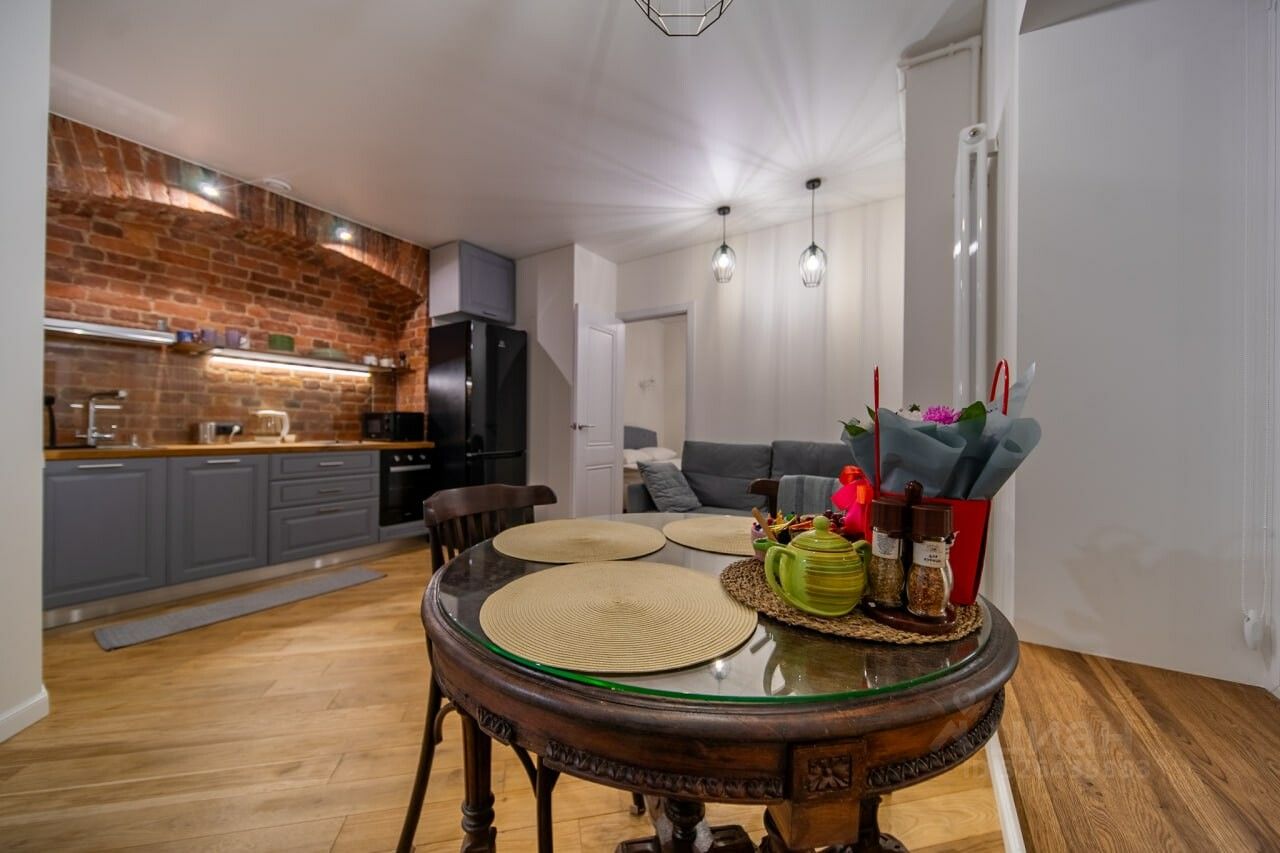 В самой квартире полный комплект мебели, оборудования и посуды позволят вам не беспокоиться о бытовых вопросах.