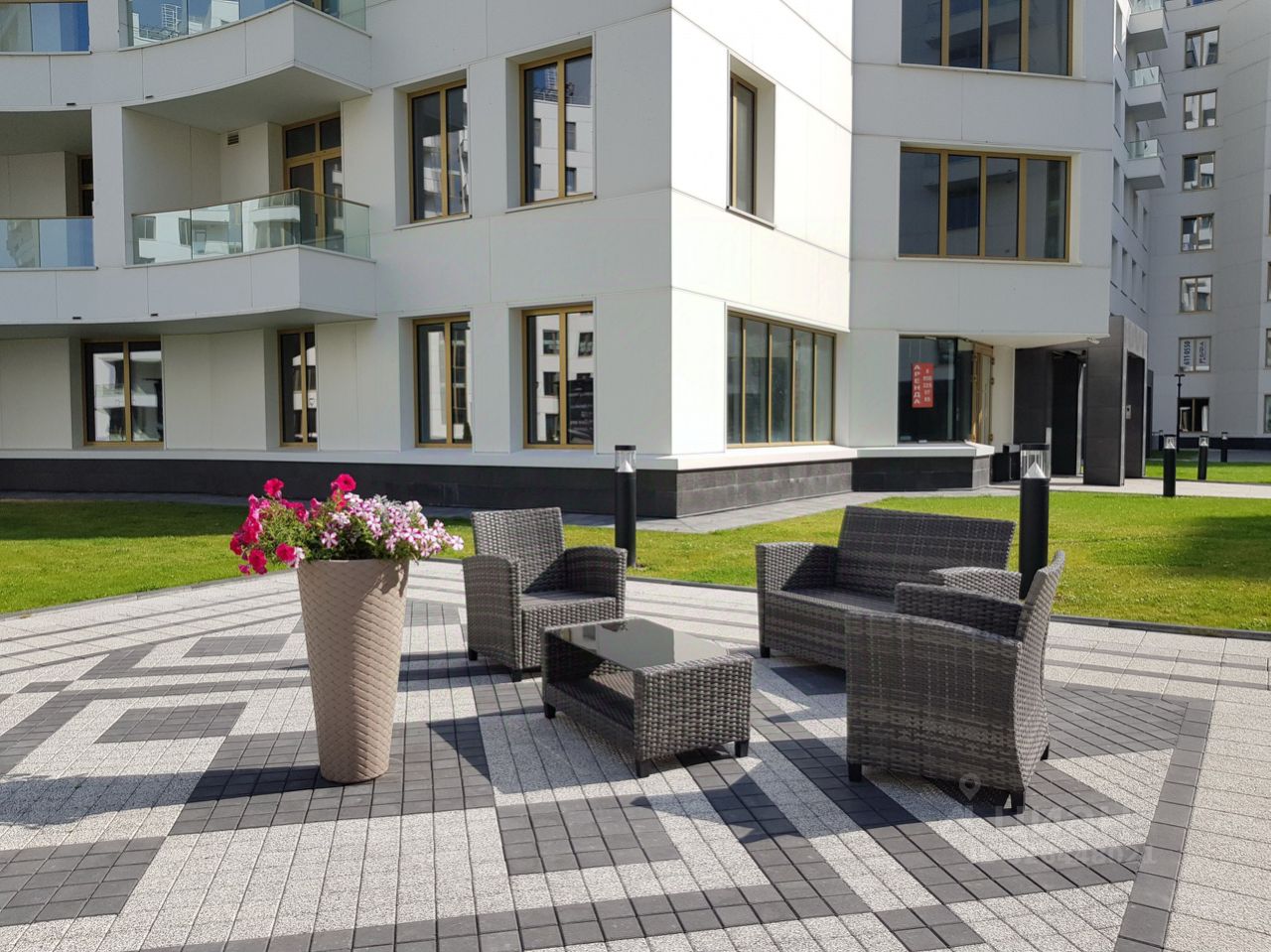 Частный детский сад, игровые площади, фитнес-клуб с бассейном.