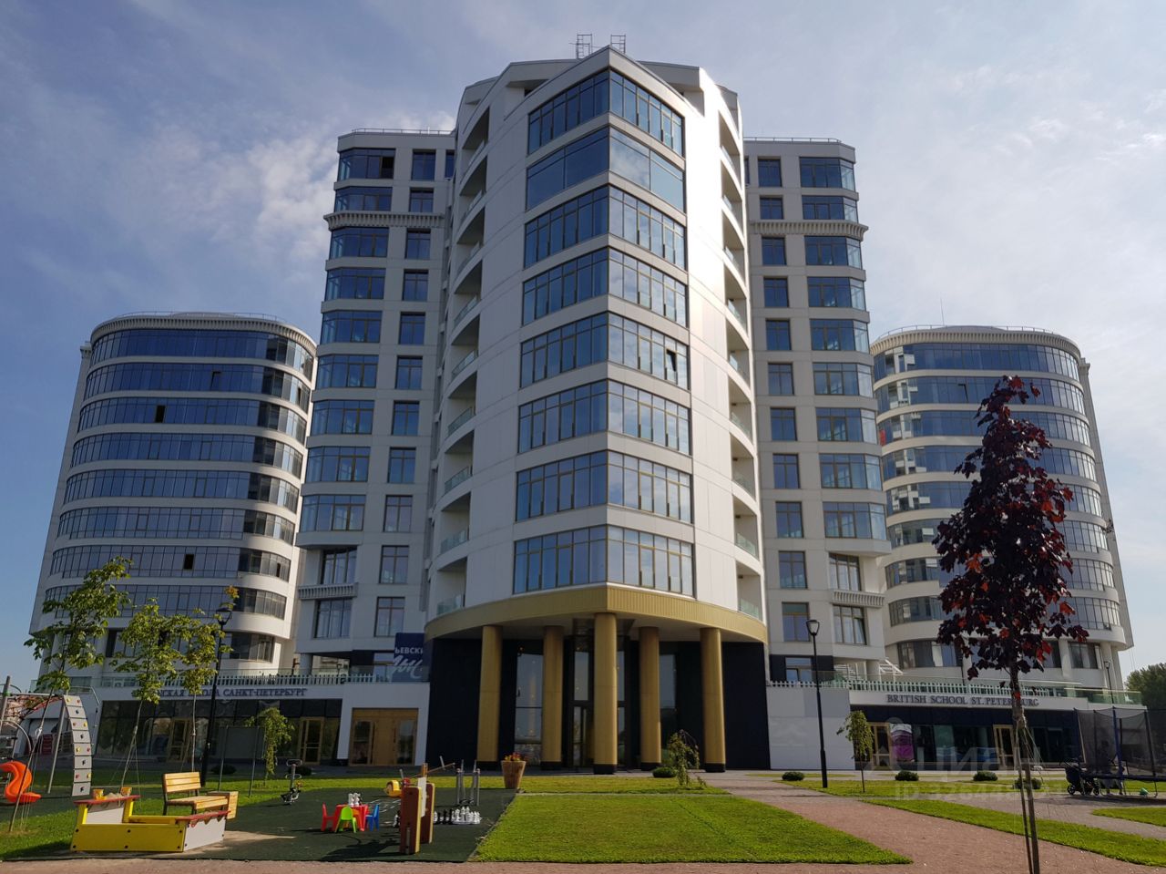 Частный детский сад, игровые площади, фитнес-клуб с бассейном.