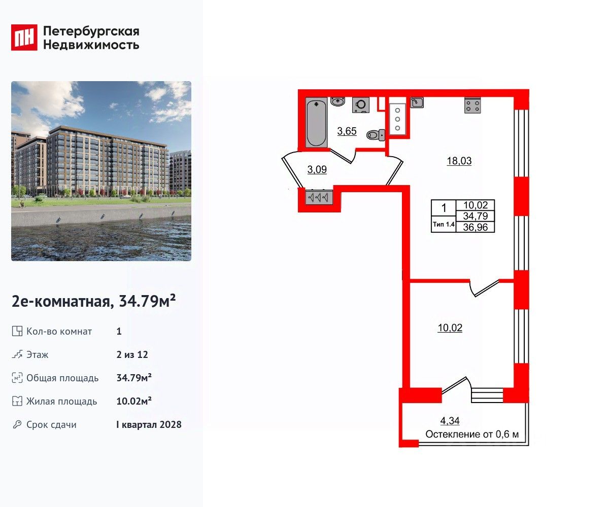 Удобная, классическая, функциональная европланировка, большая кухня-гостиная 18.03 м², вместительная прихожая 3.09 м². Общая площадь квартиры - 34.79 м², жилая 10.02 м², высота потолка 2.77 м.