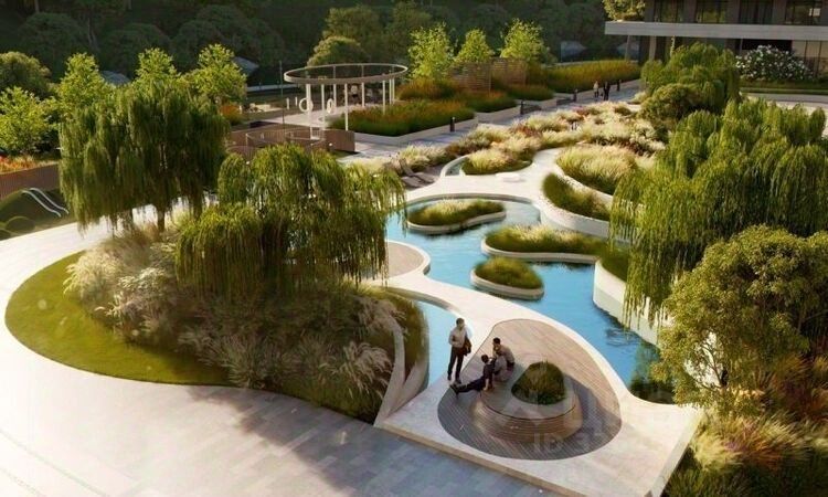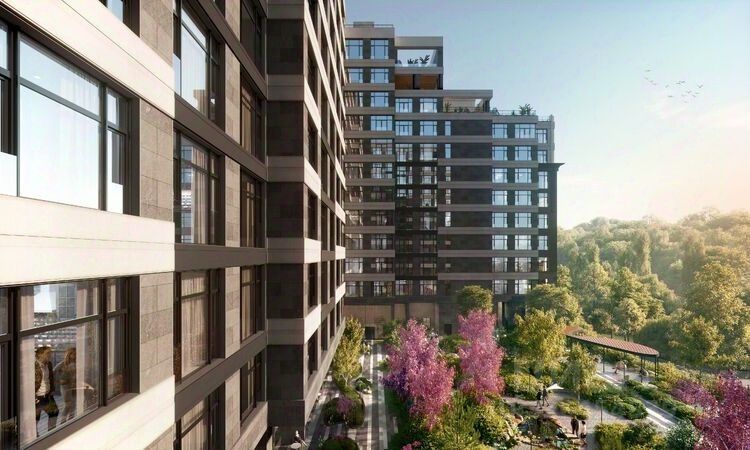 Закрытый двор без машин обеспечен круглосуточной охраной и системами контроля доступа. Двор создан как ландшафтное продолжение окружающих природных парков и зонирован для различных видов отдыха, детских игр, занятий спортом. Работает шоурум.
