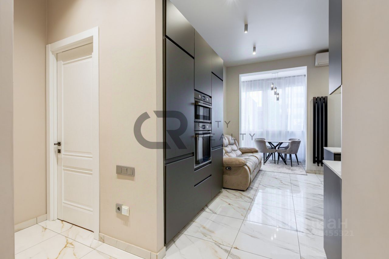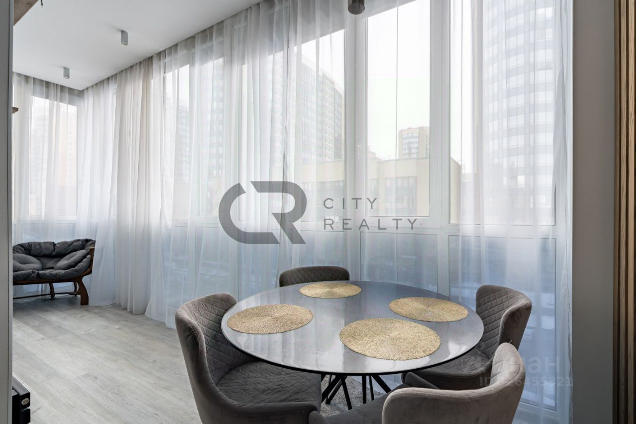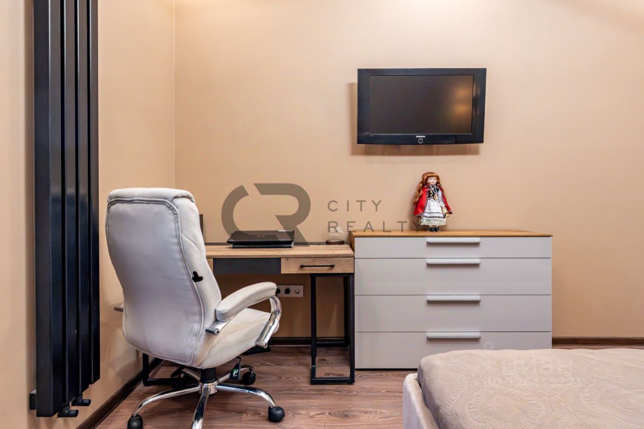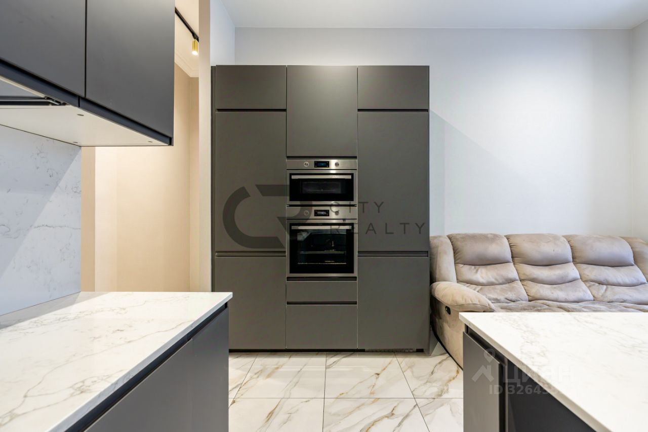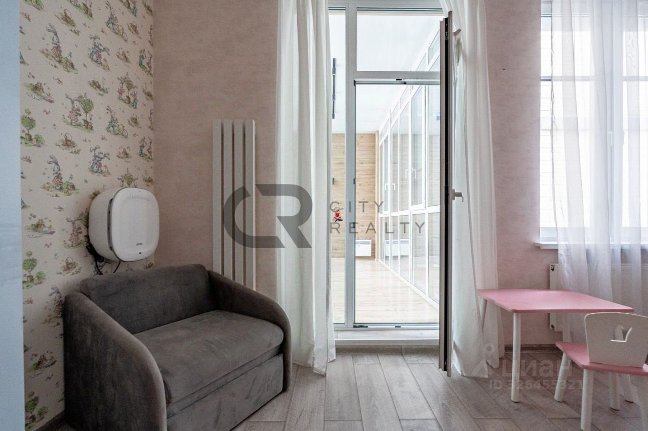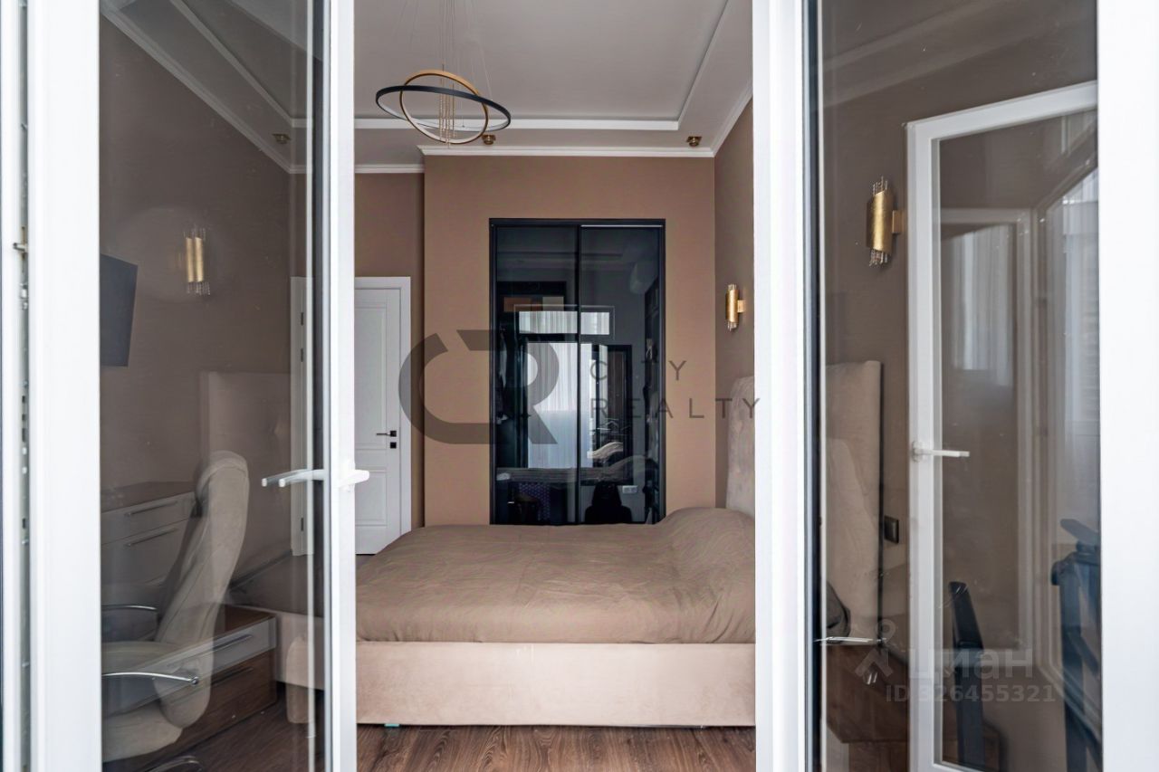 О квартире: • Выполнен стильный ремонт по дизайн-проекту. • Функциональная двусторонняя планировка: изолированные комнаты 18 и 17 метров, спальня с гардеробной и детская. • Просторная кухня-гостиная с зоной столовой, полностью укомплектованная мебелью и бытовой техникой. • Утепленная лоджия 12 метров и балкон с панорамным остеклением, выходящий во двор. • Просторная прихожая со встроенной вместительной системой хранения и гардеробной комнатой. • Два санузла , полноценная ванная.