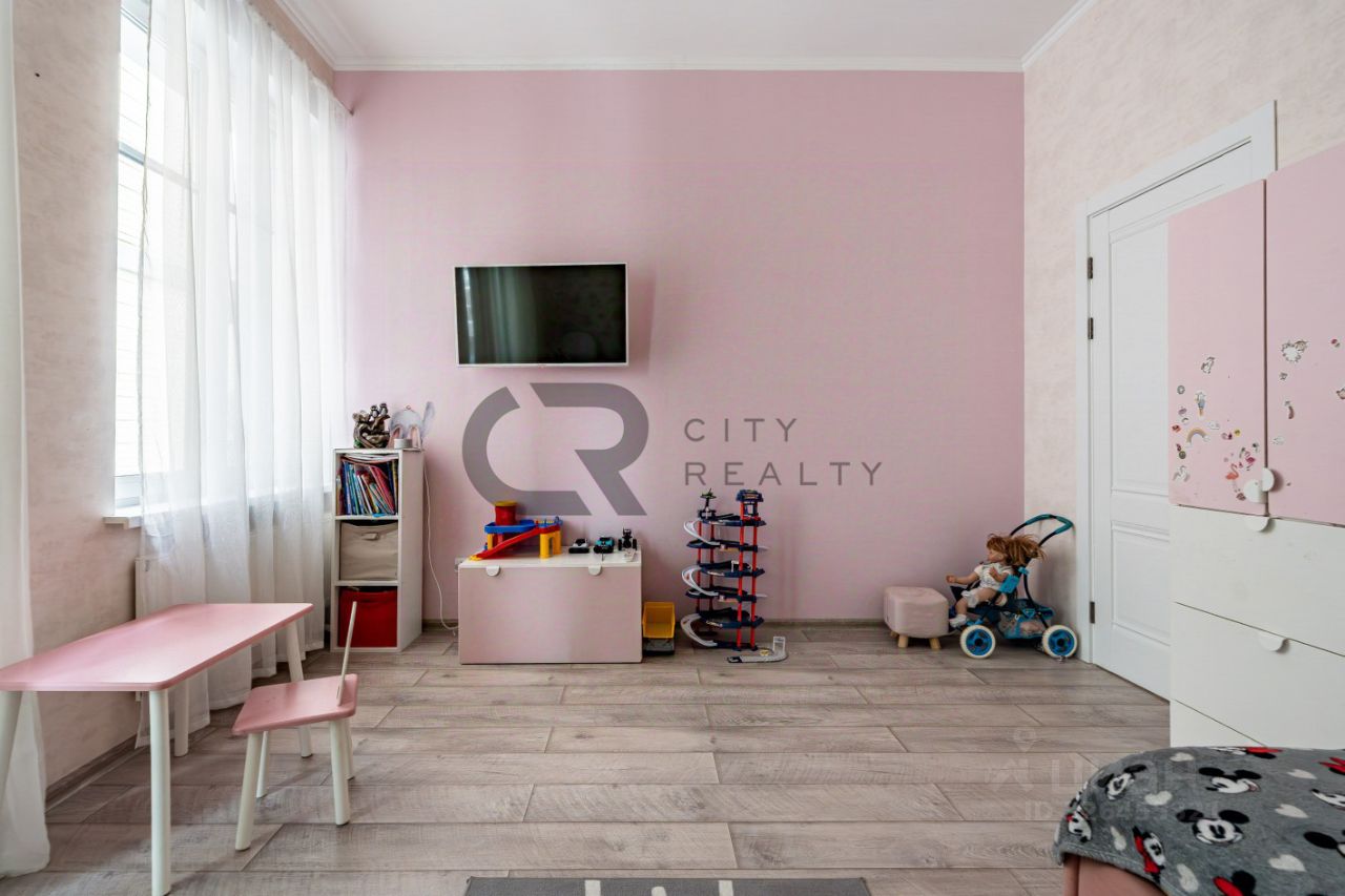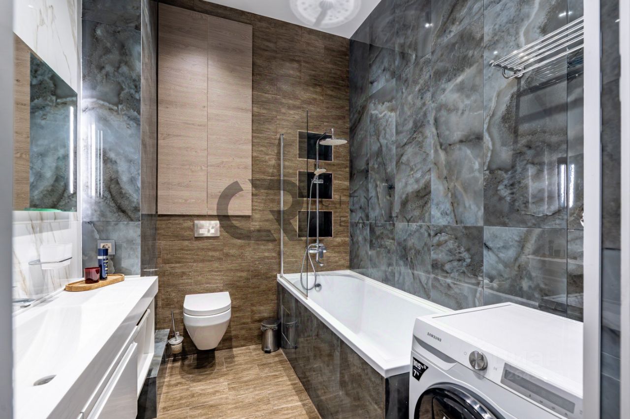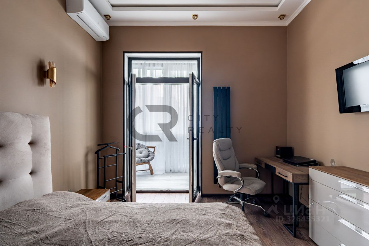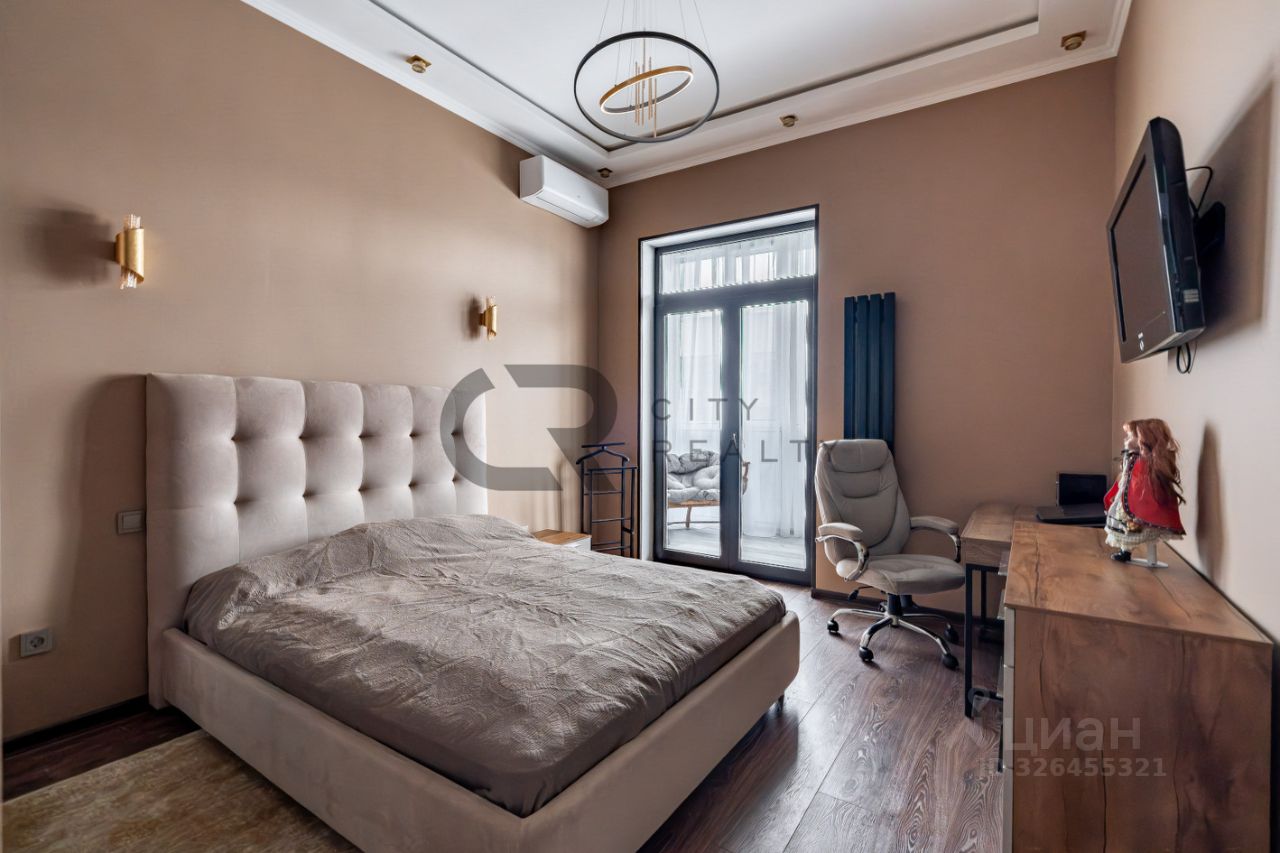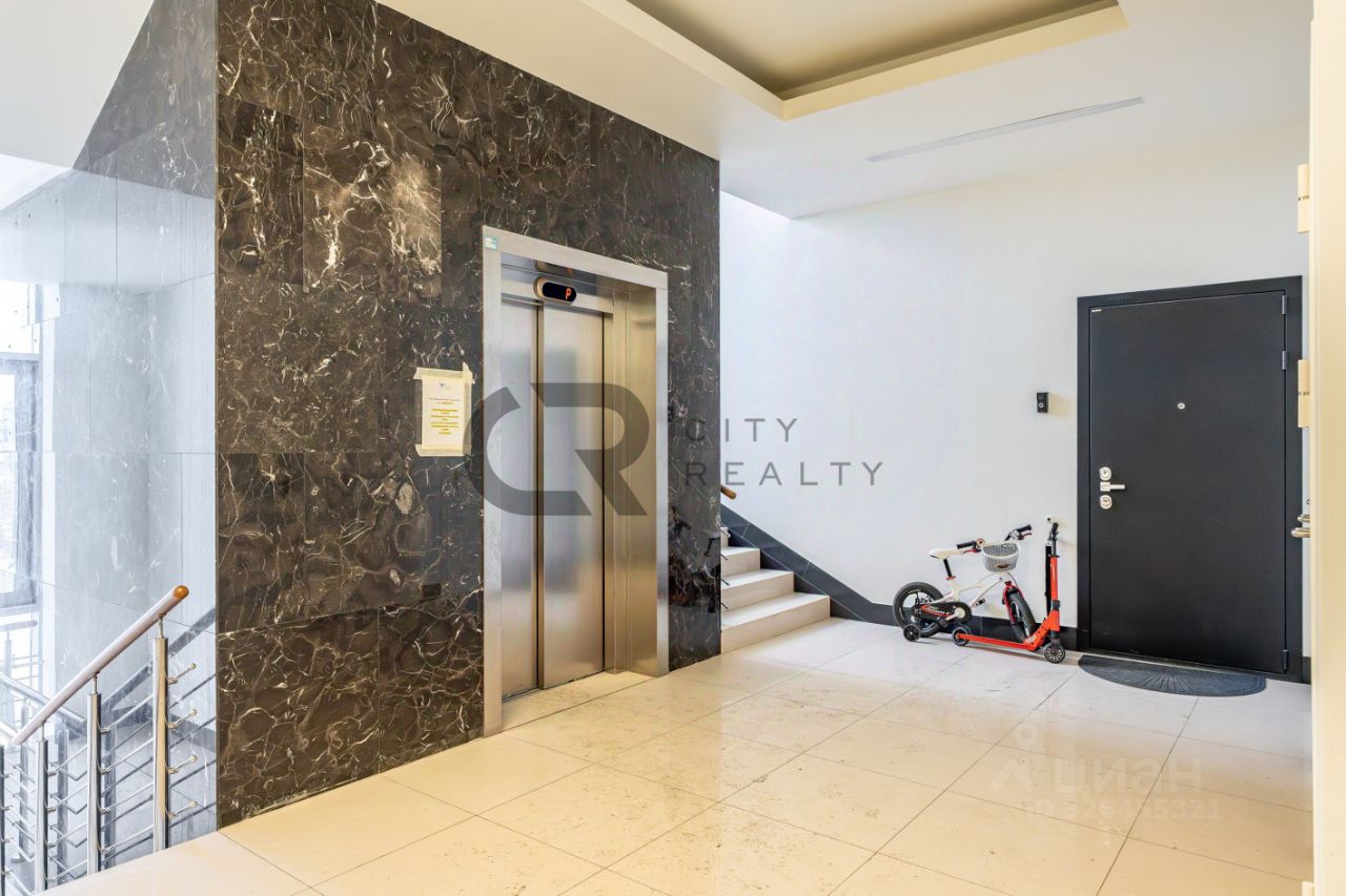 О квартире: • Выполнен стильный ремонт по дизайн-проекту. • Функциональная двусторонняя планировка: изолированные комнаты 18 и 17 метров, спальня с гардеробной и детская. • Просторная кухня-гостиная с зоной столовой, полностью укомплектованная мебелью и бытовой техникой. • Утепленная лоджия 12 метров и балкон с панорамным остеклением, выходящий во двор. • Просторная прихожая со встроенной вместительной системой хранения и гардеробной комнатой. • Два санузла , полноценная ванная.