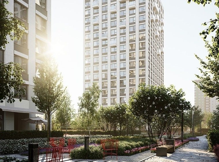 Во дворе нет машин. Это приватное пространство, попасть в которое могут только жители. Здесь спроектированы: променад, лаунжи с садовой мебелью, где, развалившись на шезлонге, можно почитать или поработать, и детские площадки.