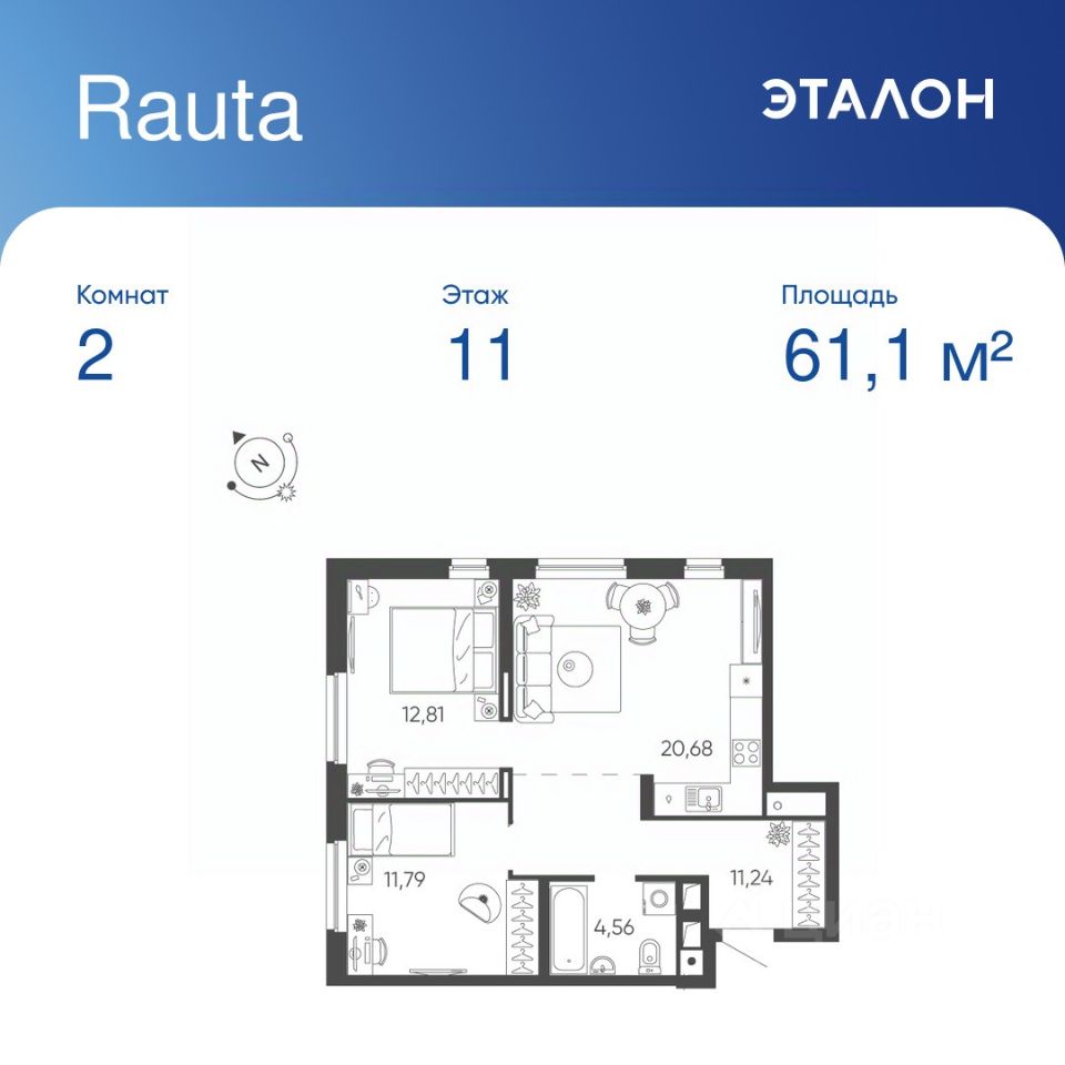Общая площадь квартиры — 61.08 кв. м, этаж 11 из 24.