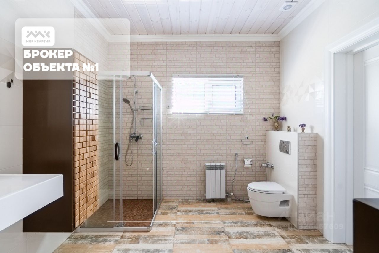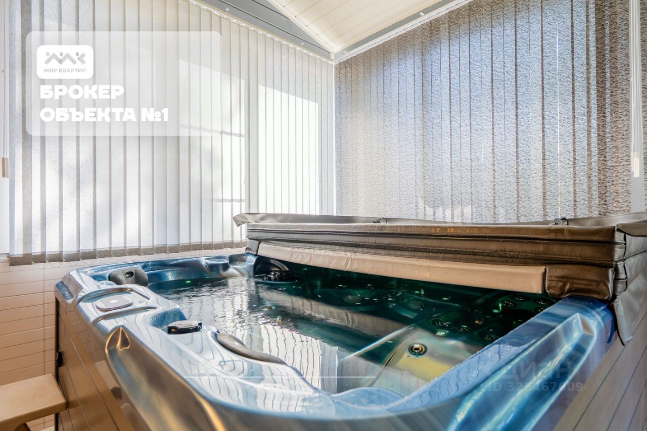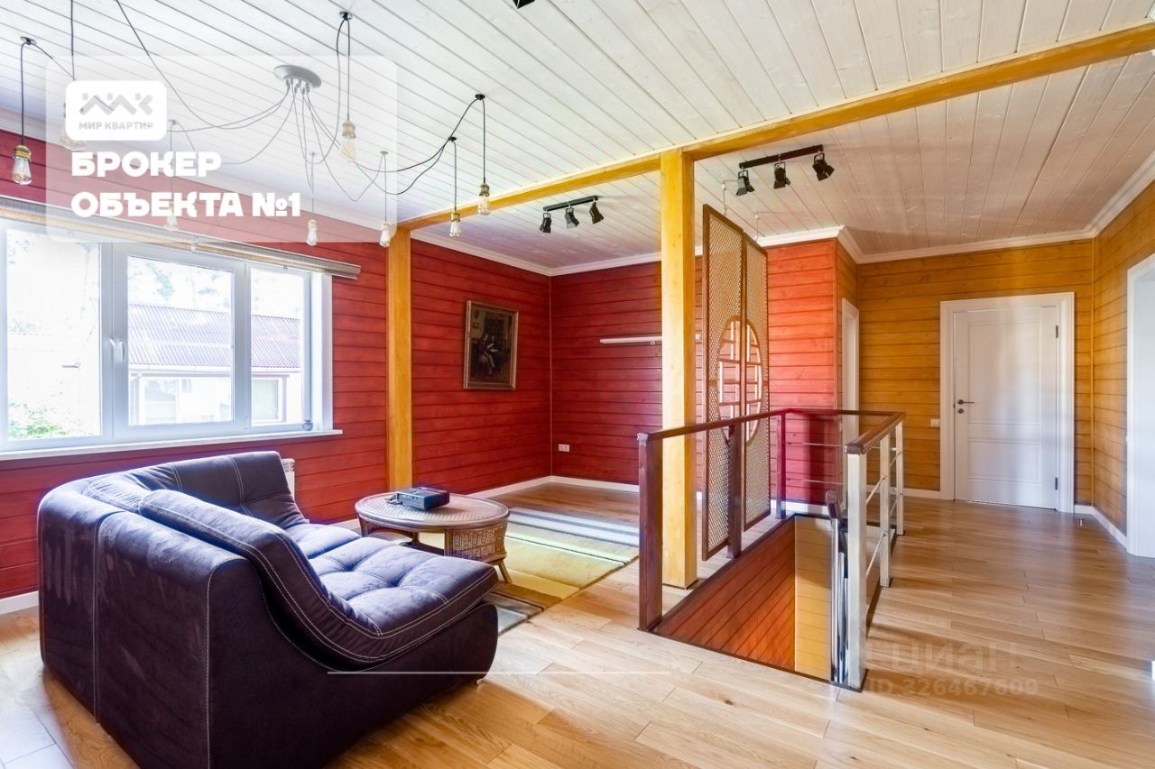 На территории расположено два дома: Первый (основной) дом 250 м2: Стены из бревна, кирпич, обшиты блокхаусом, фундамент - бетонная плита. большая открытая терраса. 1 этаж: гардеробная, гостевая спальня, гостиная с выходом на террасу, кухня, санузел с сауной и застекленная веранда с джакузи. 2 этаж: спальня с гардеробом, кабинет, гостевая спальня, гостиная, санузел и постирочная.