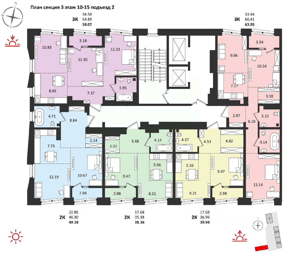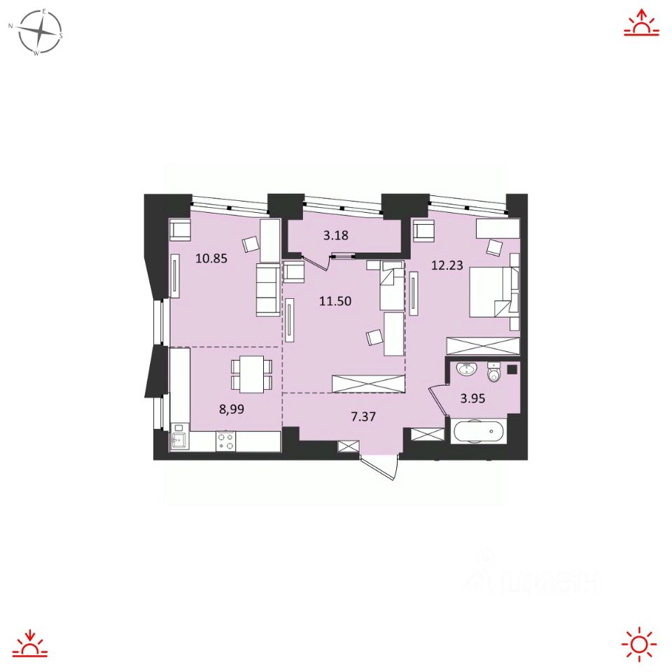 О КВАРТИРЕ Площадь 58,37м2 Продуманная и гармоничная планировка квартиры обеспечивает максимум комфорта и удобства для каждого жильца. Особое достоинство — окна, выходящие на два стороны света, наполняют пространство естественным светом и воздухом. В квартире 2 изолированные комнаты Просторная кухня-гостиная 19,84м2 В прихожей предусмотрено место под встроенную мебель. Совмещенный санузел