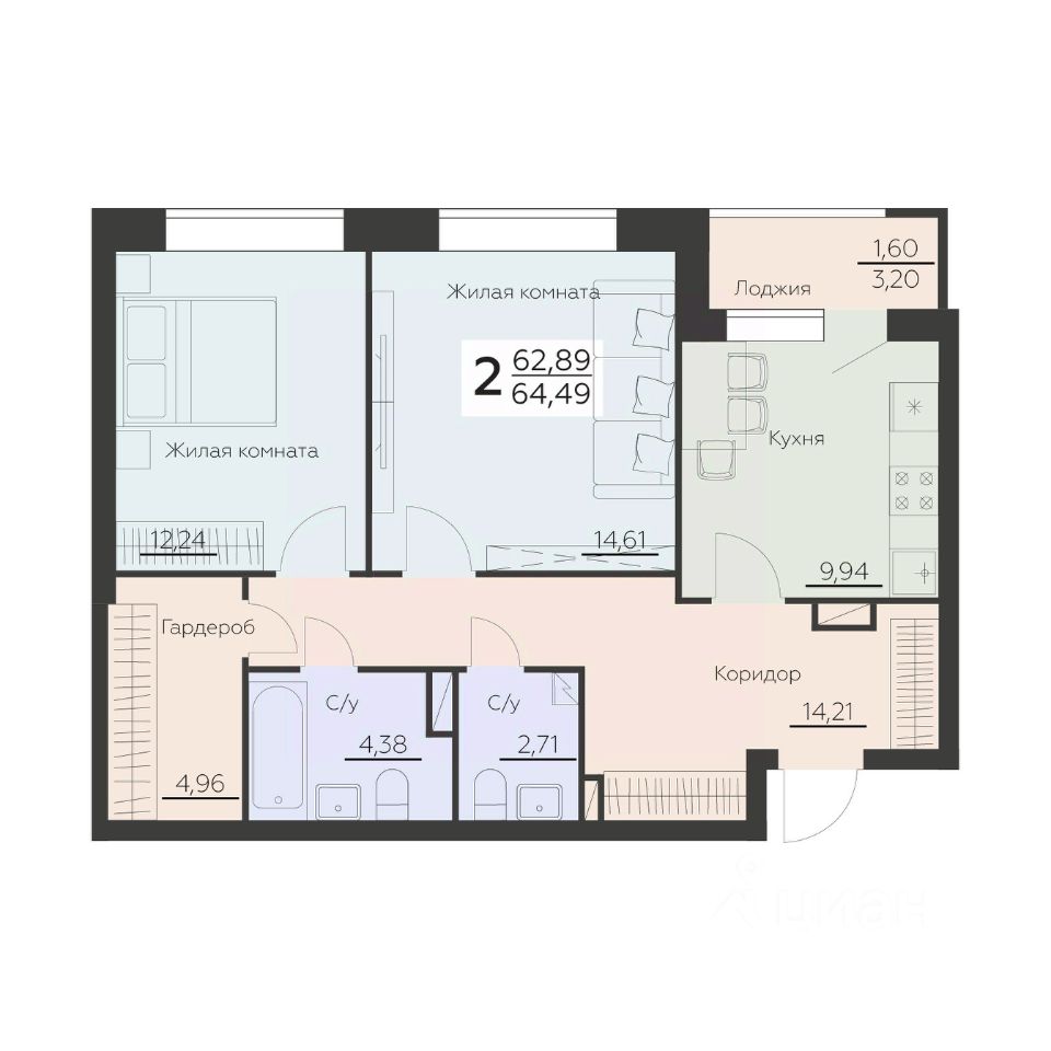продам 2-к, Ленинградская, 29б9 170 478 ₽
