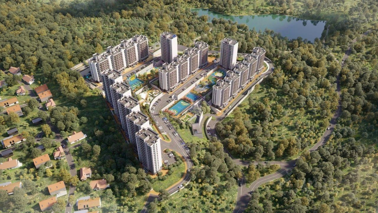 Аккуратный облик домов Жилой комплекс состоит из пяти корпусов высотой от 10 до 16 этажей. Сдержанные фасады в бежево-серых оттенках выглядят аккуратно и гармонируют с природным окружением, а открытые балконы добавляют облику домов легкости. Контейнеры под кондиционеры встроены в фасады и практически незаметны, благодаря чему дома сохраняют опрятный внешний вид. Комплекс расположен на склоне горы, поэтому из окон квартир на верхних этажах открываются отличные панорамные виды на лес, озеро и город: чем выше этаж, тем выразительнее пейзаж.
