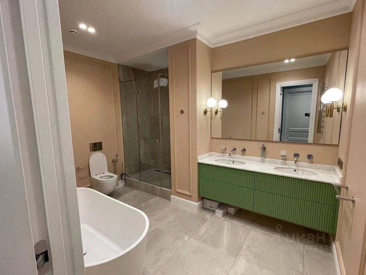 мастерспальня: просторная, изолированная, с собственной гардеробной и полноценным современным санузлом,