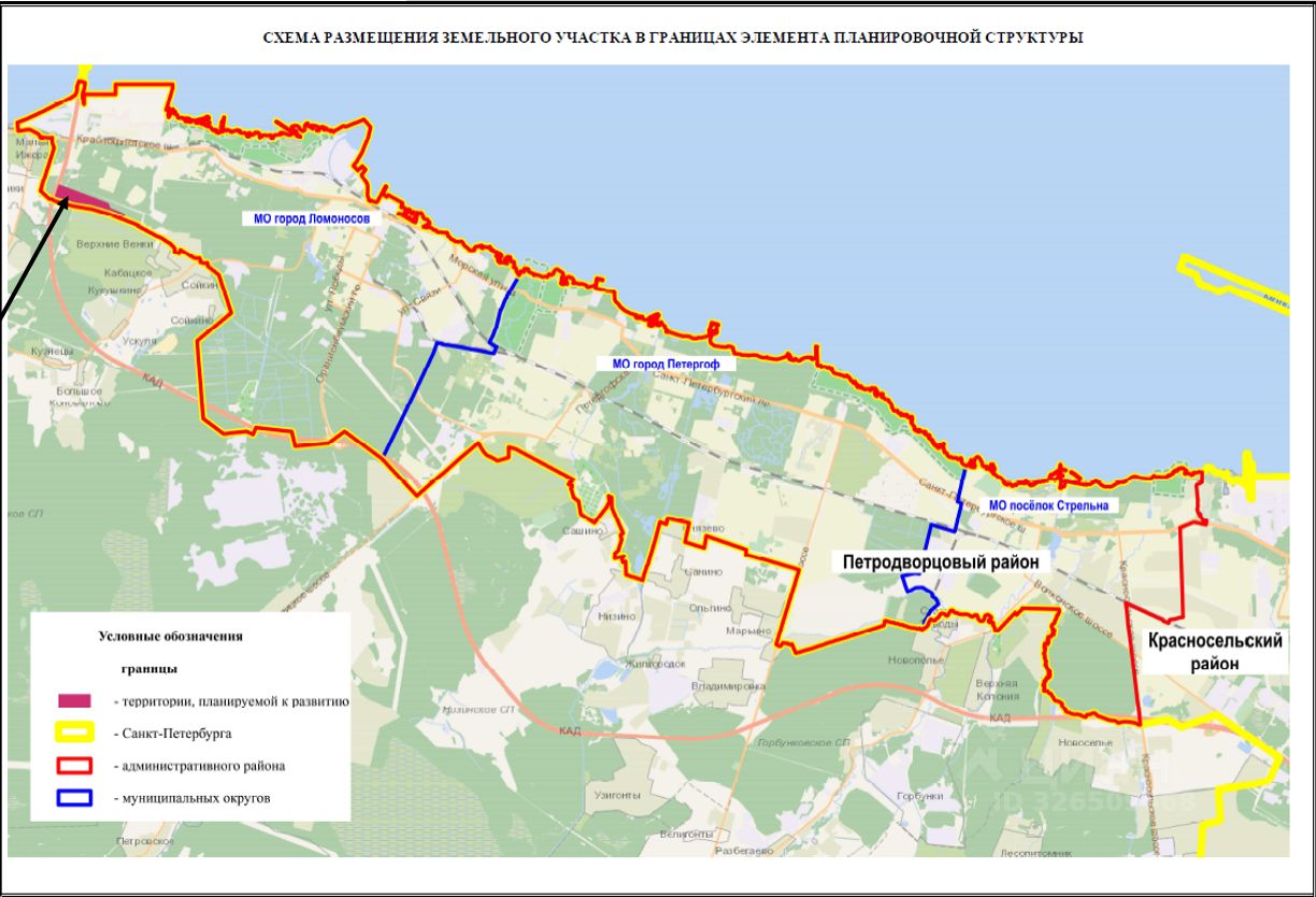 Код лота: РАД-434887. Реализуется на торгах. Масштабный земельный участок площадью 22, 19 га в престижном Петродворцовом районе Санкт-Петербурга, город Ломоносов. Идеальное расположение у КАД главный козырь проекта. Участок находится в одном из самых перспективных районов города Готовая зона для строительства современной городской среды. Территория уже подготовлена для реализации масштабных проектов Разрешенная высота застройки до 39 метров простор для самых смелых архитектурных решений. Кадастровый номер 78:40:2061302:3 все документы в полном порядке Категория земель земли населенных пунктов ВРИ для размещения коммерческих объектов, не связанных с проживанием населения (бизнес-центров, отдельных офисов различных фирм, компаний и других т. д.