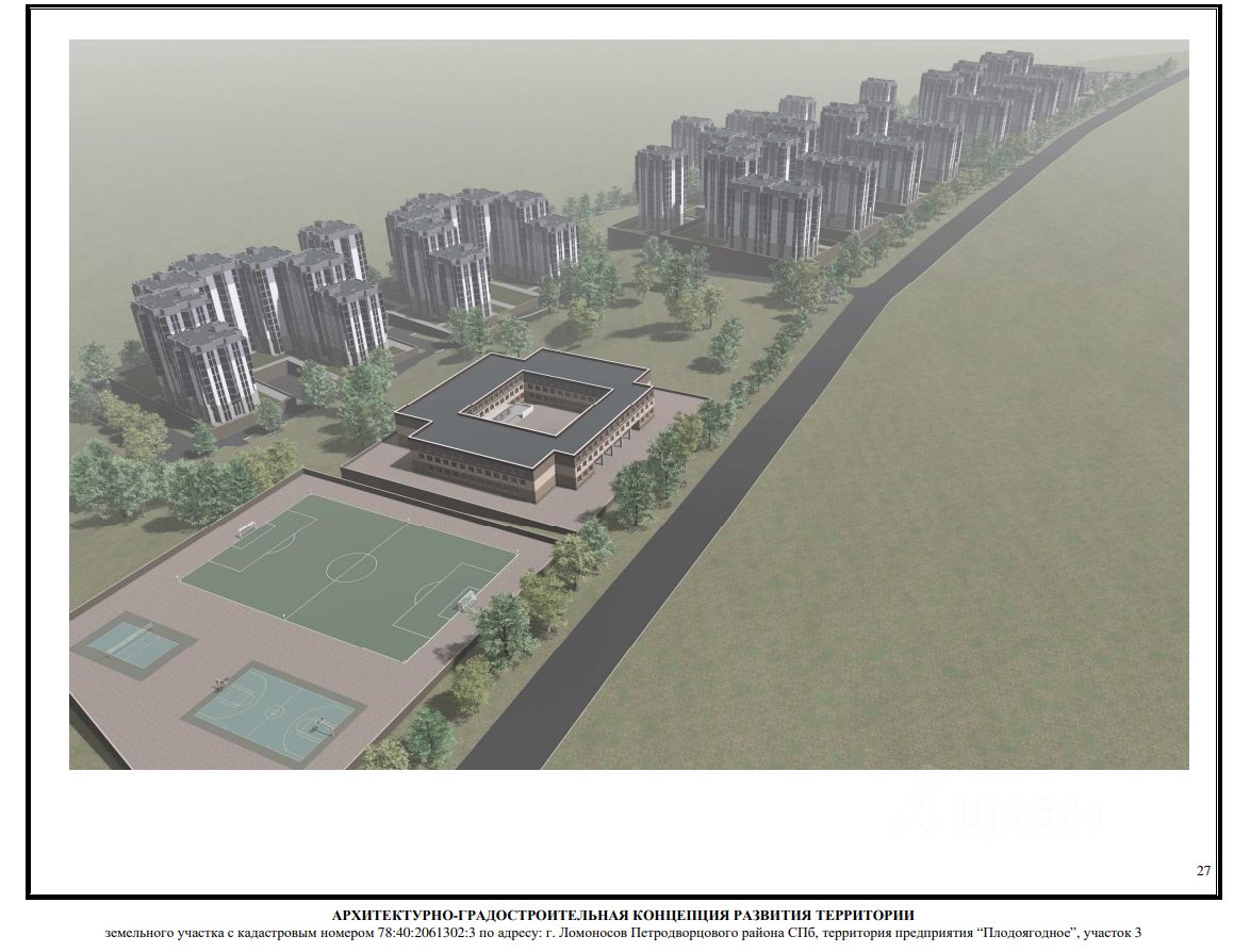 Код лота: РАД-434887. Реализуется на торгах. Масштабный земельный участок площадью 22, 19 га в престижном Петродворцовом районе Санкт-Петербурга, город Ломоносов. Идеальное расположение у КАД главный козырь проекта. Участок находится в одном из самых перспективных районов города Готовая зона для строительства современной городской среды. Территория уже подготовлена для реализации масштабных проектов Разрешенная высота застройки до 39 метров простор для самых смелых архитектурных решений. Кадастровый номер 78:40:2061302:3 все документы в полном порядке Категория земель земли населенных пунктов ВРИ для размещения коммерческих объектов, не связанных с проживанием населения (бизнес-центров, отдельных офисов различных фирм, компаний и других т. д. ) Условно разрешенные виды использования Среднеэтажная жилая застройка, Многоэтажная жилая застройка (высотная застройка) Основные расчетные технико-экономические показатели для многоэтажной жилой застройки (высотной застройки): Площадь участка, га 19, 16 Площадь застройки, кв. м 21 575 Максимальная общая площадь объекта капитального строительства, кв. м 182 162 Этажность, эт 12 Высота, м 39 Общая площадь квартир 127 583 Общая площадь встроенных (или торговых) помещений, кв. м 11 440 Население, чел. 4 557 Наполняемость, мест / посещ. в смену ДДУ 287 Наполняемость, мест / посещ. в смену школы 547 Работники, чел. 224 Посетители/учащиеся, чел. 1 279 В настоящее время в отношении объекта имеются следующие документы: Градостроительный план земельного участка Концепция Бронка 2022 Пояснительная записка ИРД Обоснование проектного решения ПЗ_ДПТ_Транспортная инфраструктура территории Пояснительная записка Карта планировочной структуры территорий Санкт-Петербурга Схема использования территории в период подготовки проекта планировки Схема планировочного решения развития территории В отношении территории разработана АРХИТЕКТУРНО-ГРАДОСТРОИТЕЛЬНАЯ КОНЦЕПЦИЯ РАЗВИТИЯ ТЕРРИТОРИИ земельного участка с кадастровым номером 78:40:2061302:3. Грандиозные планы развития территории: Новые современные магистрали и транспортные развязки, которые сделают район еще более доступным Современный транспортно-пересадочный узел на базе станции Ораниенбаум-I удобство для жителей и гостей района Развитие городских направлений с выходом на федеральные трассы ваш район будет расти вместе с городом! Готовая концепция, которая включает: Спортивные площадки для активного образа жизни с современным оборудованием Детские игровые зоны с безопасными покрытиями и игровыми комплексами Зеленые аллеи для спокойных прогулок с ландшафтным дизайном Удобные проезды между кварталами никаких проблем с передвижением! https://catalog. lot-online. ru/index. php?dispatch=products. view&product_id=1580214