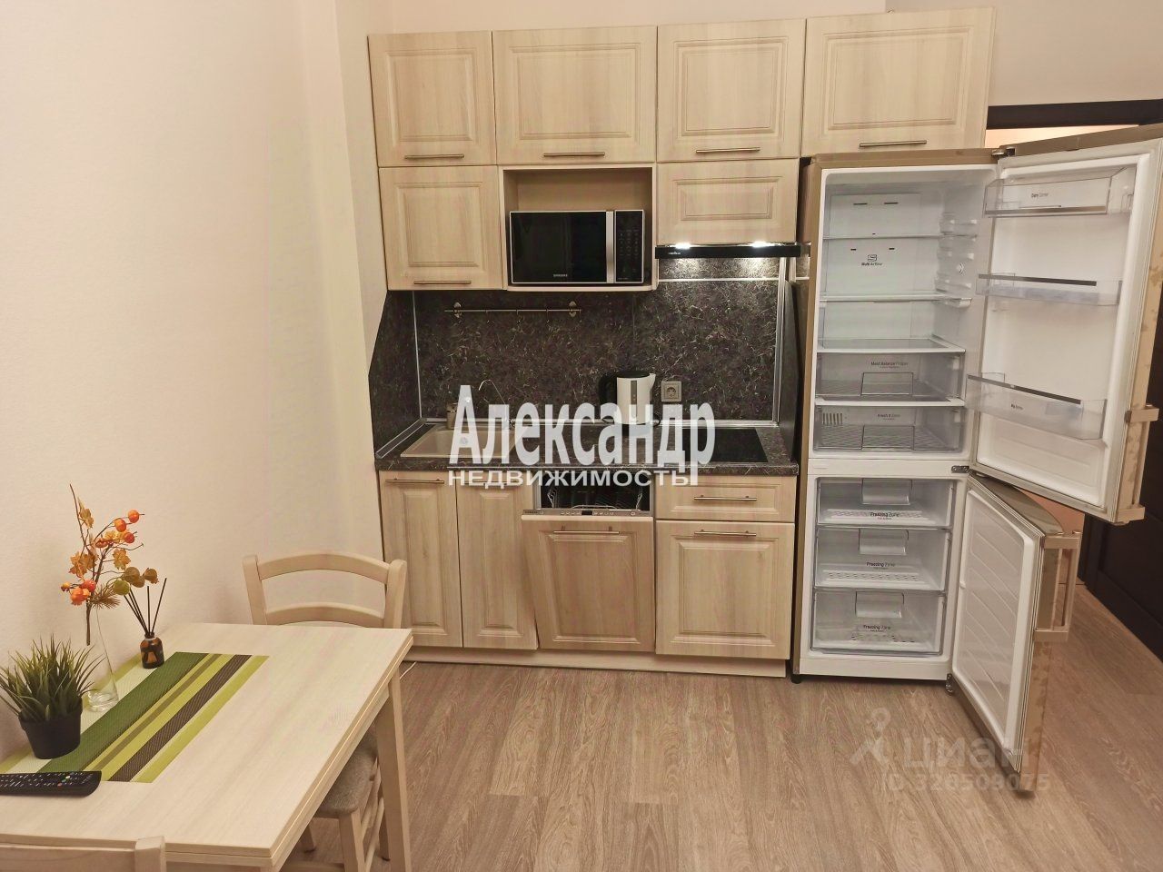 1705681 Квартира в современном ЖК ''Рио'' с красивым видом на город и утепленной лоджией-кабинетом. Панорамный вид на город, окна выходят во двор. Остекление лоджии заменено на теплое, выполнена отделка, имеется освещение и установлен подогрев полов. Квартира очень светлая, благодаря большому окну, высокие потолки 2,8 м., площадь квартиры 24 м2 + лоджия 4 м! Квартира в отличном состоянии, максимально продуманное оснащение: вместительная встроенная кухня с посудомоечной машиной, удобный шкаф с зеркалом, встроенные шкафы в прихожей, в санузле установлена современная душевая кабина (заменена после застройщика). Имеется дополнительная бытовая утварь: пылесос, гладильная доска, утюг, чайник. Комфортный ЖК с благоустроенным двором, парковкой, подземным паркингом, а также видеонаблюдением. До метро ''Пр. Большевиков'' - 15-17 мин. пешком, метро ''Новочеркасская'' - 10 мин. на трамвае (остановка рядом с домом), а также удобно добираться на трамвае в центр города. Напротив ТРК ''Лондон Молл'', ''Леруа Мерлен''. Важно: квартира сдается только на длительный срок, без животных, желательно для одного человека / сем. пары.