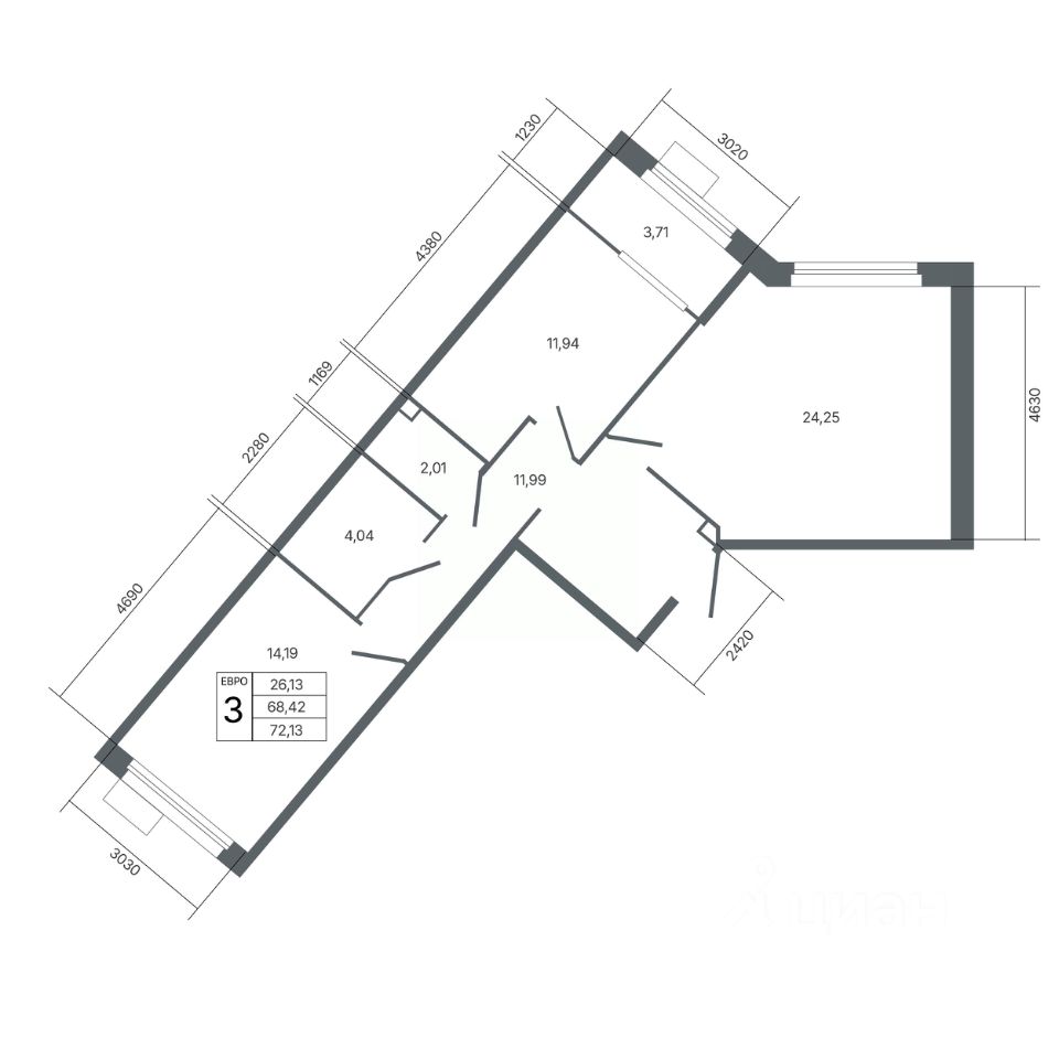 Общая площадь72,13 м2