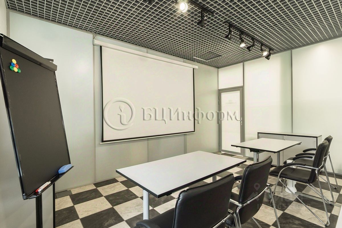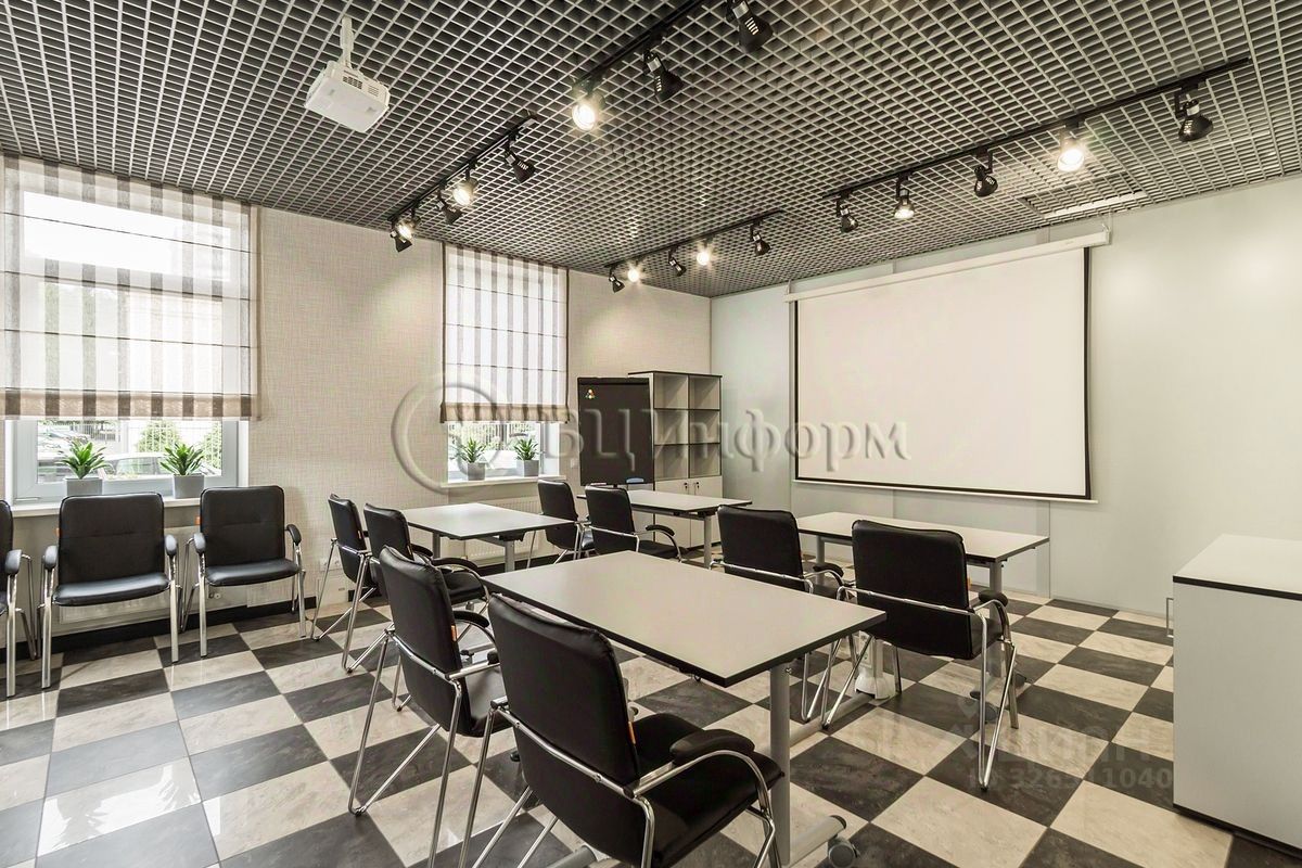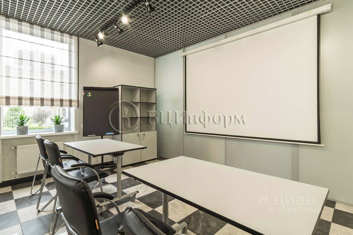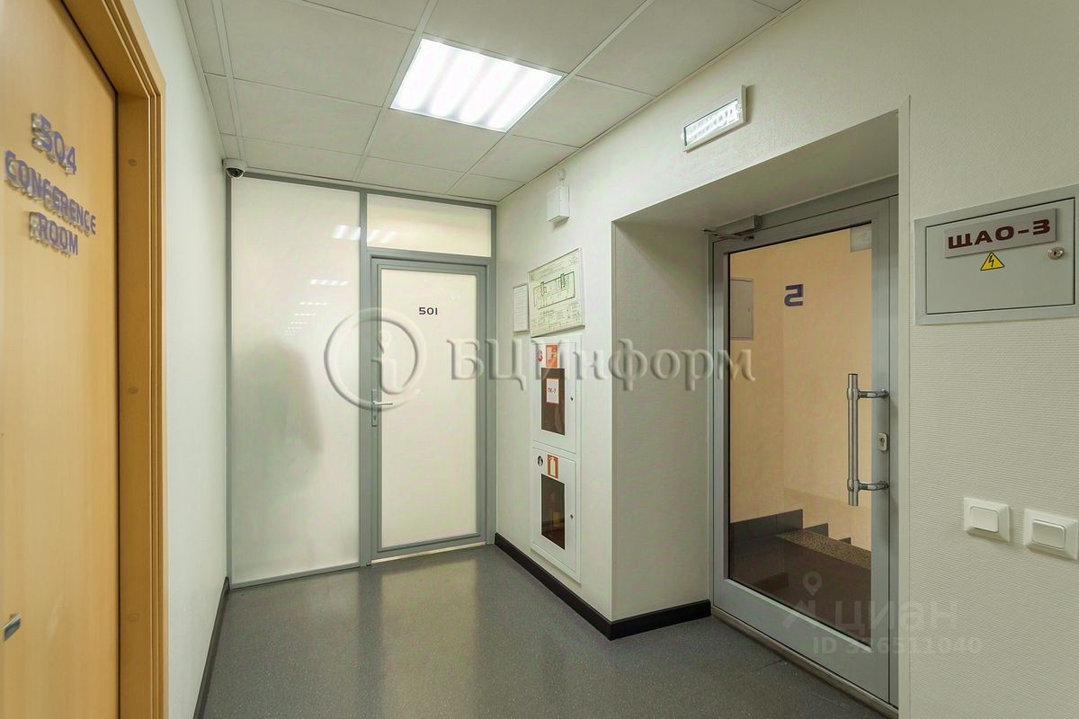 Расположено на втором этаже. Произведена классическая офисная отделка. Стены - обои под покраску, подвесные потолки ''Армстронг''.