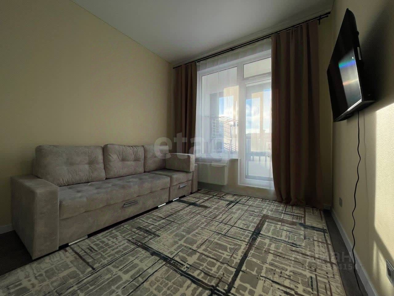 В просторной кухне установлена современная техника: большой холодильник, духовой шкаф, плита и вытяжка. Комната оборудована шкафом для хранения вещей,телевизором и диваном. Санузел совмещенный, отделан кафелем, в нем установлена современная сантехника,ванна и стиральная машина.