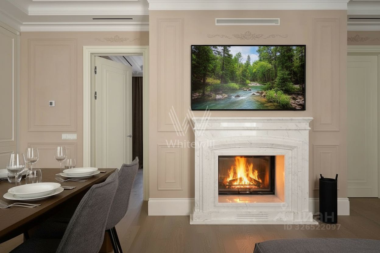 Три входные группы и лобби с каминами выполнены в разных оттенках, украшены мрамором, росписью и восстановленной лепниной.