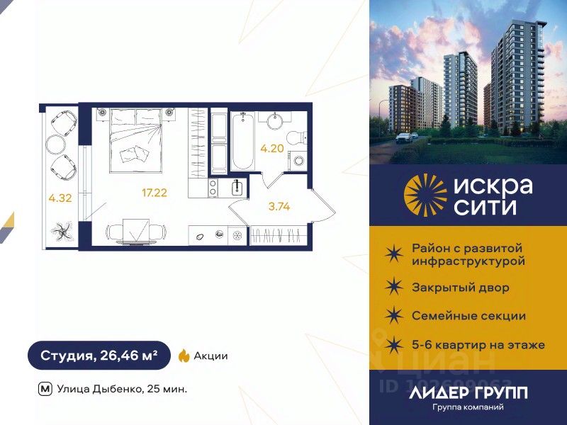 ''ИСКРА-Сити'' — жилой комплекс комфорт-класса на 777 квартир, ориентированный на семейных покупателей. В проекте очень мало студий. Дом возводится на правом берегу Невы, в Невском районе Санкт-Петербурга, между улицей Тельмана и переулком Челиева - в створе Искровского проспекта. Это давно сложившийся район без высотной или уплотнительной застройки. Прогулка до ближайшей станции метро ''ул. Дыбенко'' займёт всего 25 минут. Отлично развито транспортное сообщение. Рядом гипермаркет ''Максидом''. 4 корпуса переменной этажности от 13 до 18, объединены подземным паркингом. На первых этажах будут располагаться магазины, пекарни, аптеки и салоны красоты, есть собственный детский сад.Квартиры с угловым остеклением, собственными кладовыми. Большие ванные с окном и просторные балконы. Территория двора закрыта и благоустроена