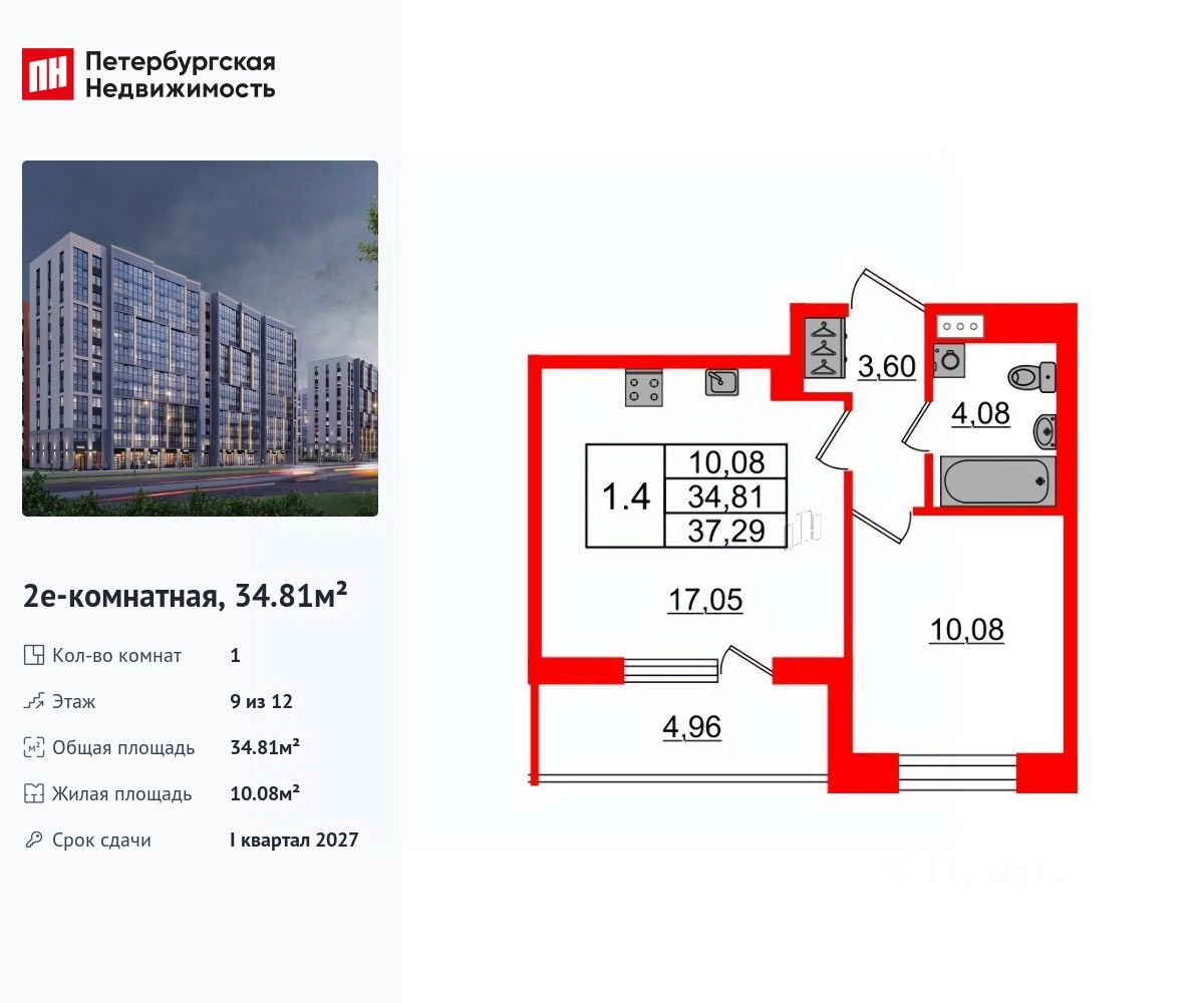 продам 1-к, Орлово-Денисовский проспект, 20 корп. 210 100 034 ₽