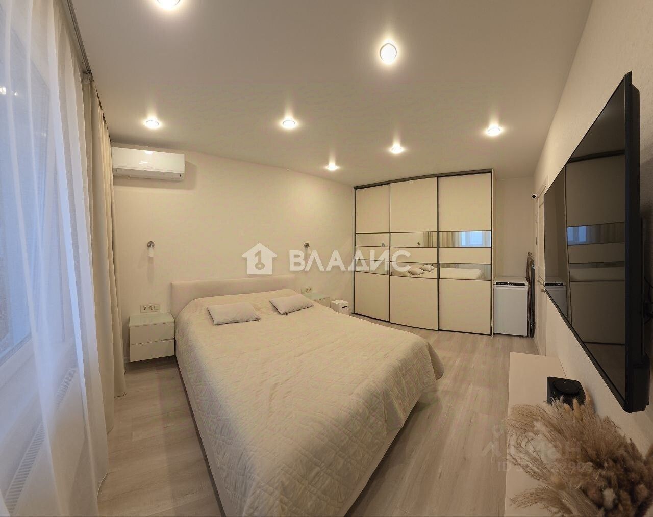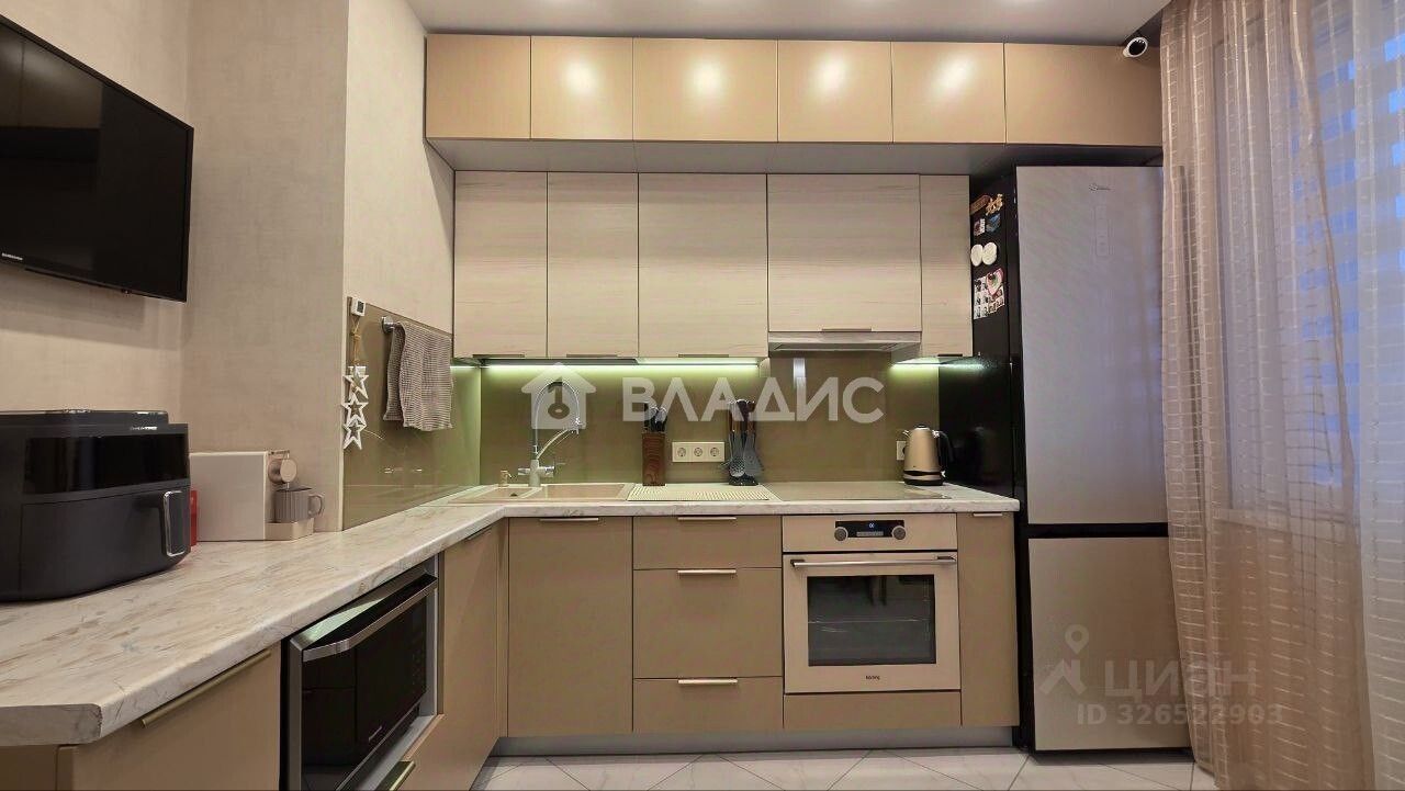 КВАРТИРА:: — Кухонный гарнитур изготовлен на заказ, качественная фурнитура с доводчиками, вcтpoeнная бытoвая тexника. — Во взрослой спальне вместительный шкаф-купе, большая кровать с ортопедическим матрасом и выходом на лоджию. В детской комнате установлено освещение ручной работы на заказ (монгольфъеры), а так же римские шторы с тематическим принтом. — В прихожей и кухне на полу широкоформатный матовый керамогранит, в жилых комнатах — износостойкий ламинат (33й класс). — На стенах износостойкие, моющиеся обои. — Просторный коридор включает полноценную зону хранения с продуманным потайным шкафом для щитка. — Санузел раздельный. В туалете установлен мощный проточный водонагреватель Thermex, в ванной тропический душ с терморегулятором, разводку инженерии выполняли профессионалы, очень много места для хранения бытовой химии и косметических средств. Современная стиральная машина Samsung на 6,5кг и функцией дозагрузки белья во время стирки. — Современный кондиционер, обеспечивающий комфортный микроклимат в любое время года. — В каждой комнате установлены камеры для удаленного отслеживания, на балконе нагреватель и кондиционер с функцией удаленного управления. — Утепленная лоджия с качественным остеклением и блэкаут рулонными шторами. — Вся мебель и техника остаётся в квартире!!!