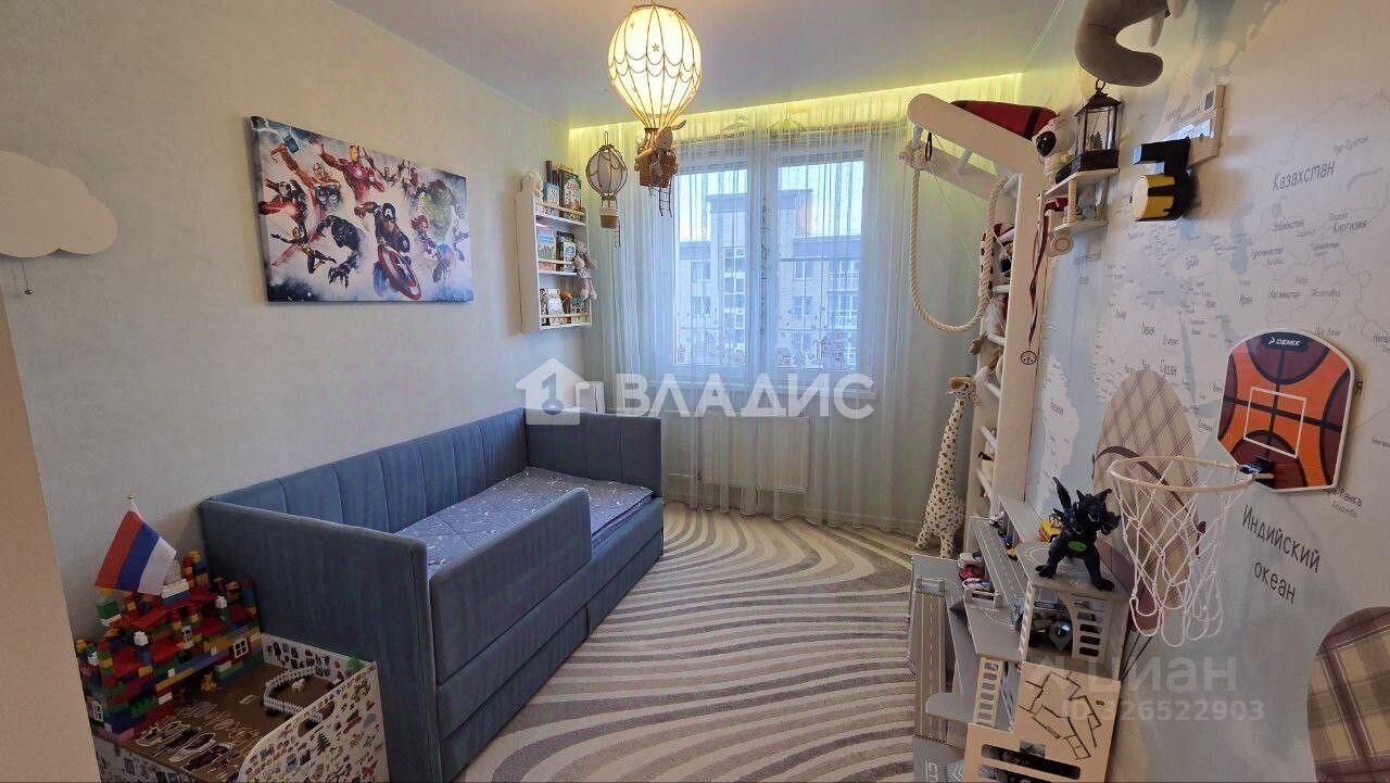 КВАРТИРА:: — Кухонный гарнитур изготовлен на заказ, качественная фурнитура с доводчиками, вcтpoeнная бытoвая тexника. — Во взрослой спальне вместительный шкаф-купе, большая кровать с ортопедическим матрасом и выходом на лоджию. В детской комнате установлено освещение ручной работы на заказ (монгольфъеры), а так же римские шторы с тематическим принтом. — В прихожей и кухне на полу широкоформатный матовый керамогранит, в жилых комнатах — износостойкий ламинат (33й класс). — На стенах износостойкие, моющиеся обои. — Просторный коридор включает полноценную зону хранения с продуманным потайным шкафом для щитка.