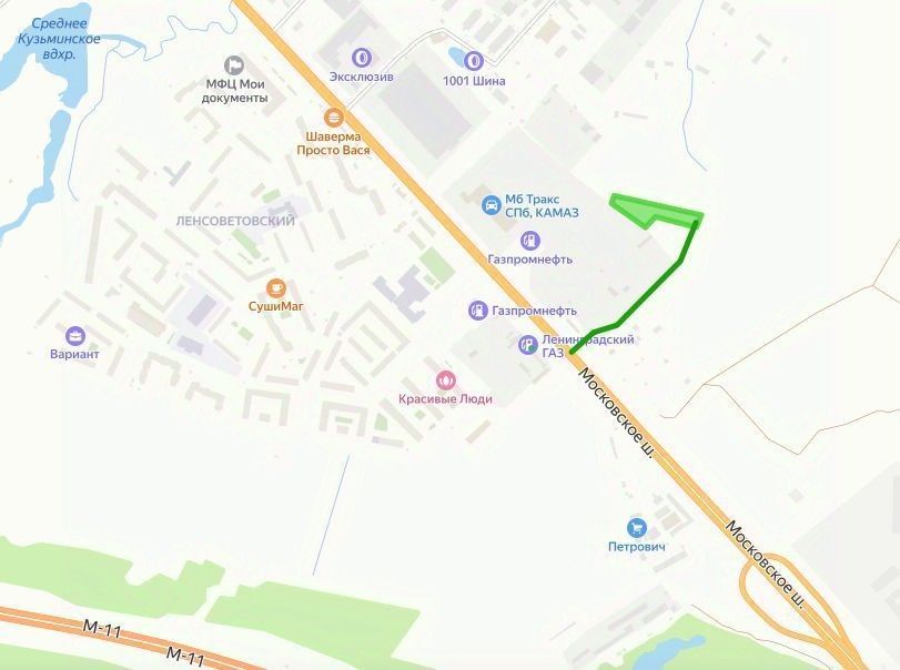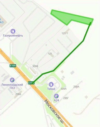 Въезд на участок организован с первой линии Московского шоссе, в сторону спб в пос. Ленсоветовский, граничит с Азс Shell.
