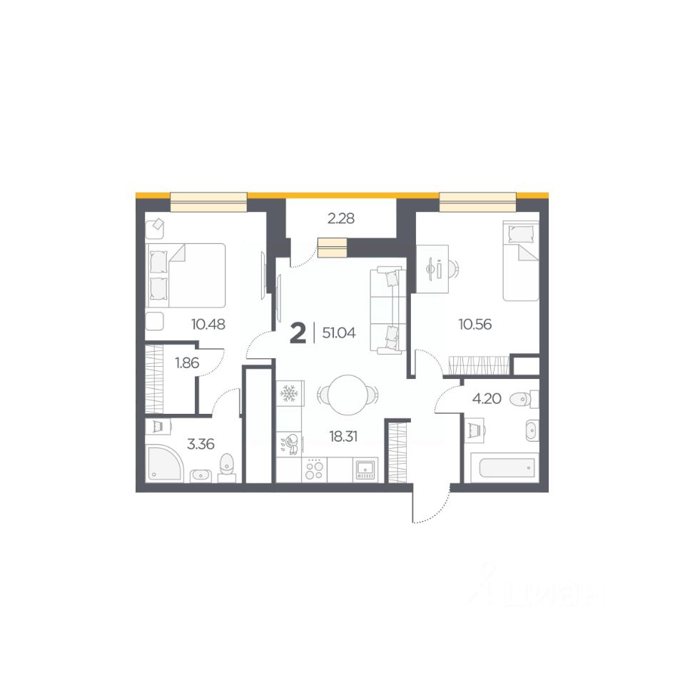 Общая площадь51,04 м2