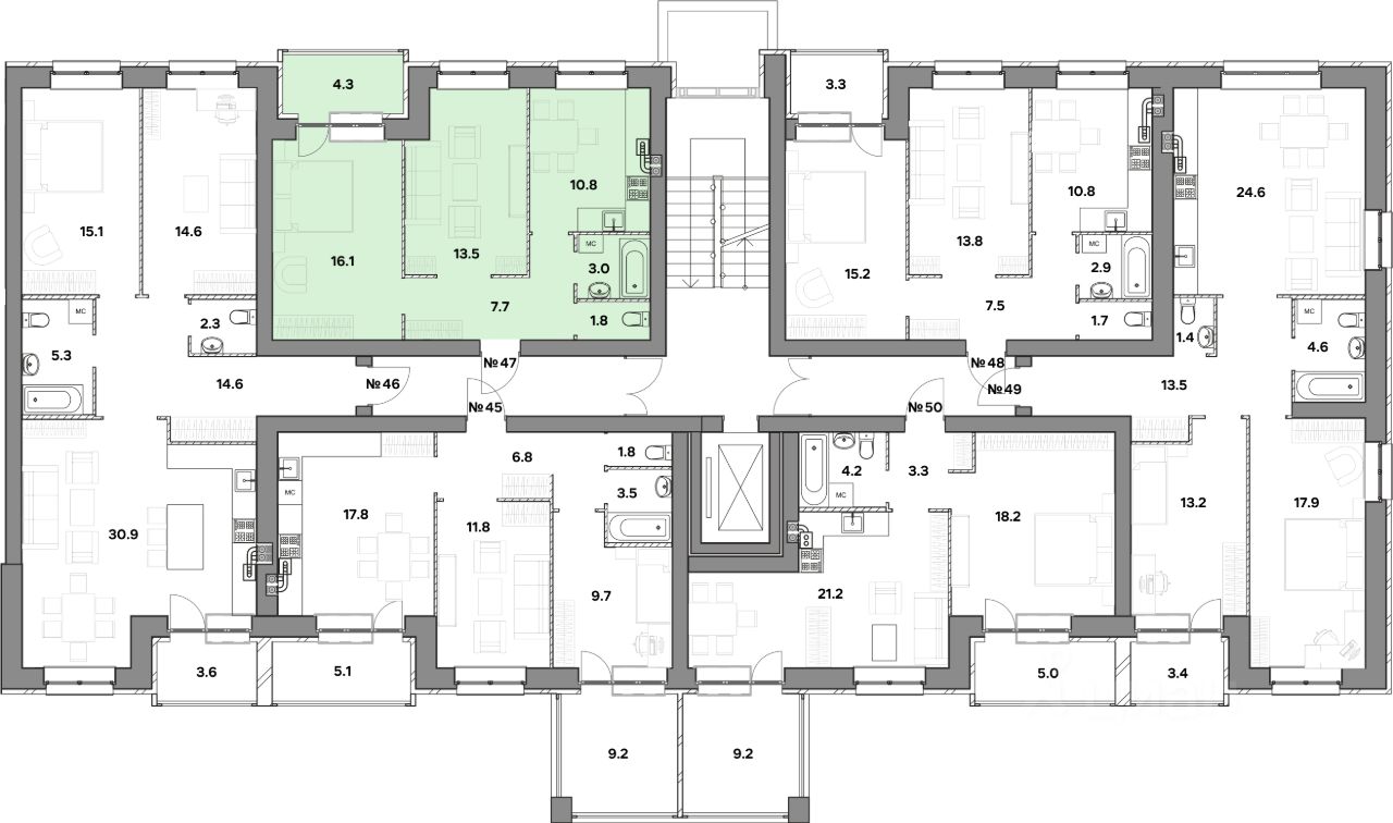 Жилая площадь29,6 м2