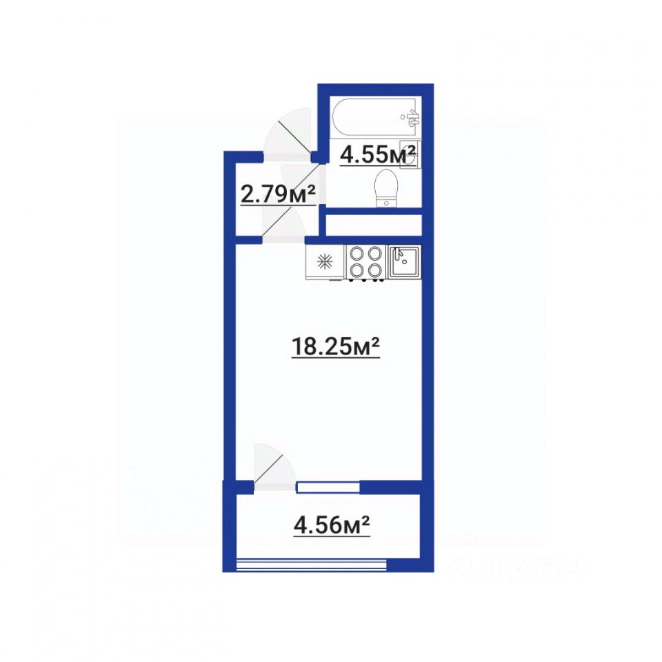 Арт. 129424505 Продается просторная студия с высокими потолками 3 м, в Приморском районе, в 5-10 минутах от метро.