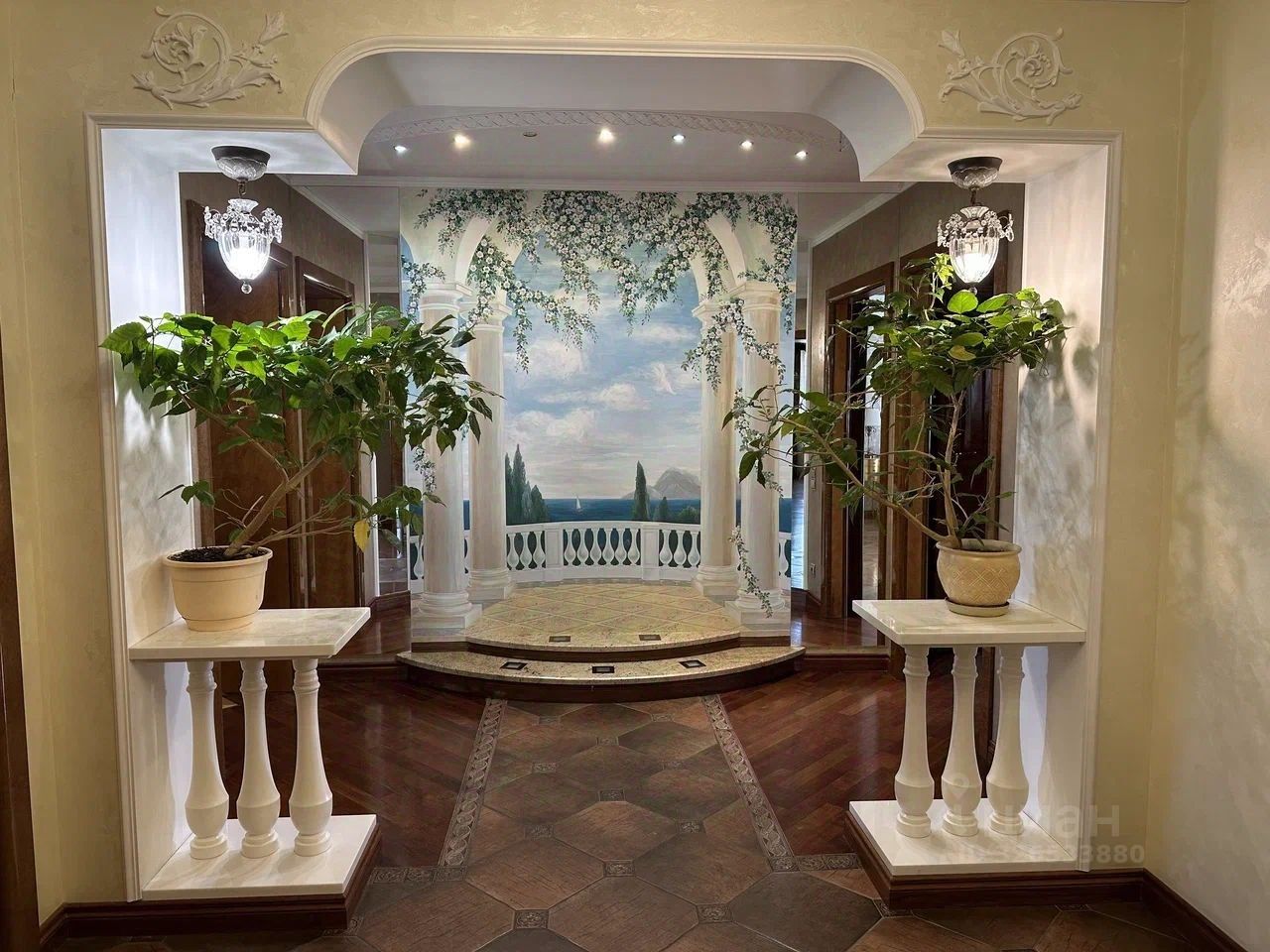 * Премиальная отделка и оснащение: * Использование исключительно высококачественных материалов: натуральный мрамор, оникс, гранит. * Изысканная гипсовая лепнина. * Элитная итальянская плитка и обои. * Полы в комнатах выполнены из натурального паркета. * Теплые полы во всех помещениях общего пользования. * Системы кондиционирования в каждой комнате. * Приточно-вытяжная вентиляция для идеального микроклимата.