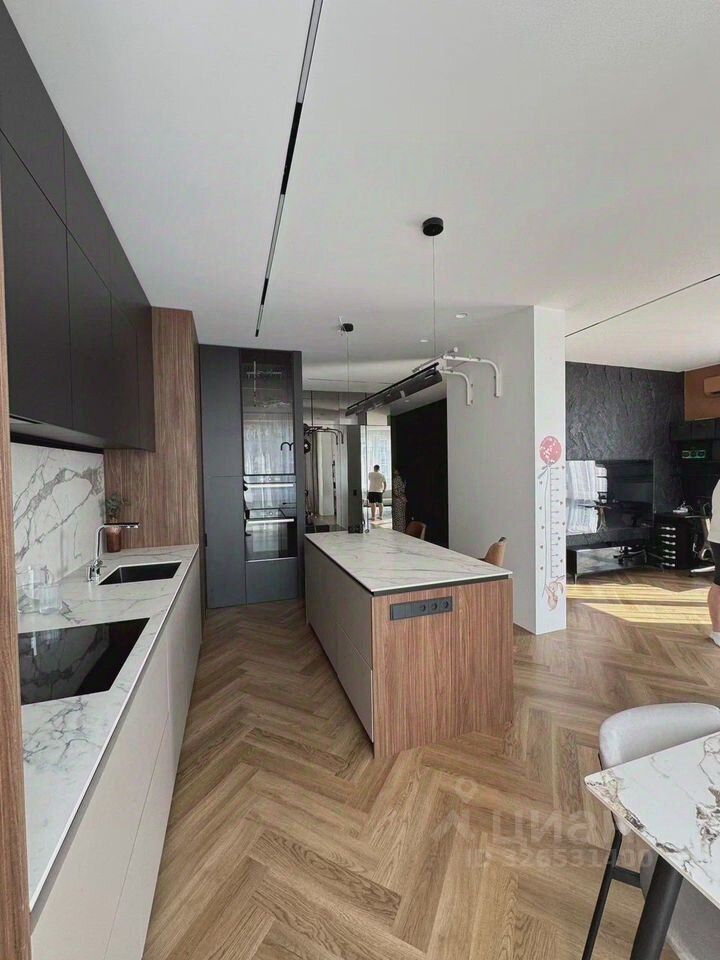 Виды на весь Петербург: Уникальные панорамные виды из окон и с балкона. Авторский ремонт: Дорогой, качественный ремонт с дизайнерскими решениями (3-метровые потолки, скрытые двери, кварц-винил, керамогранит). Простор и воздух: Высокие потолки (3 метра), умная планировка и обилие света. Полная комплектация: Вся встраиваемая техника (включая два холодильника), кондиционеры, бризеры, теплые полы, мебель премиум-класса остается. Безопасность и сервис: Закрытая территория с охраной, видеонаблюдение, 4 лифта, собственная инфраструктура в доме.