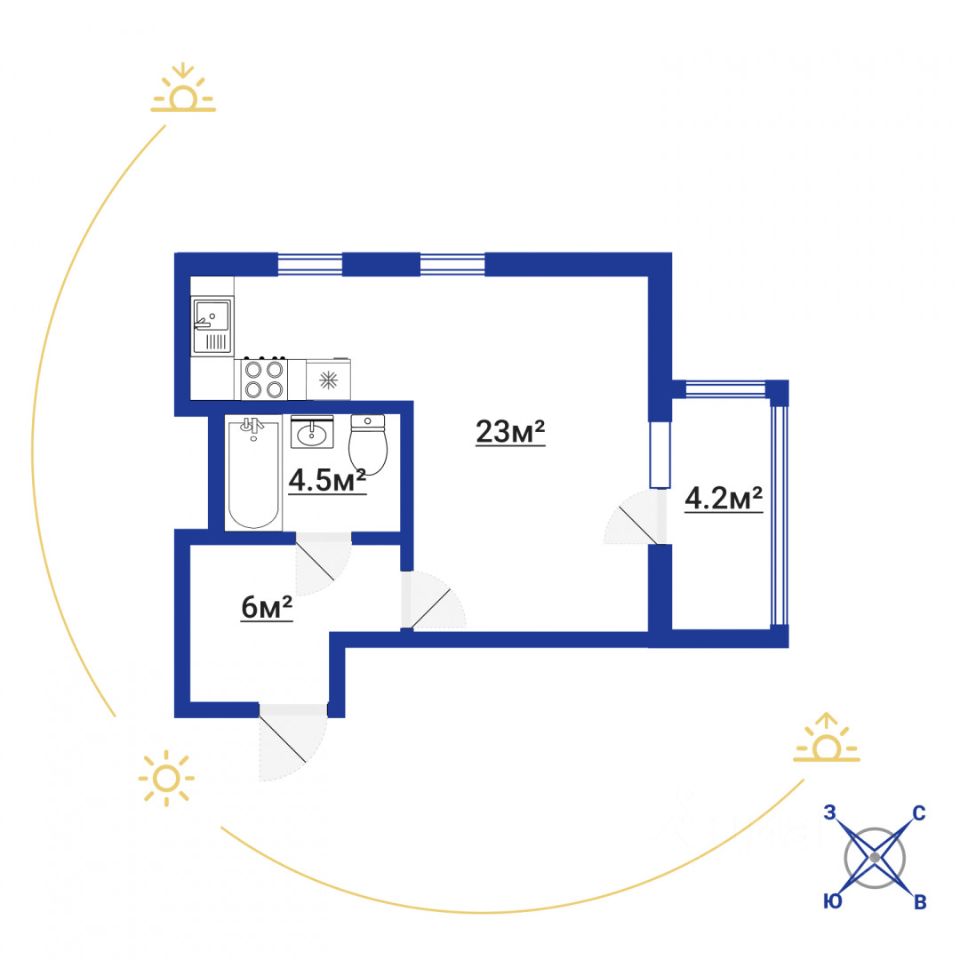 Ваша студия легко превратится в 1-комнатную квартиру с отдельной кухней по вашему желанию!