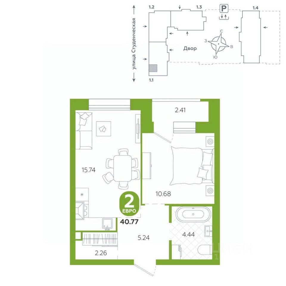 продам 1-к, Студенческая, 1д стр.9 890 000 ₽
