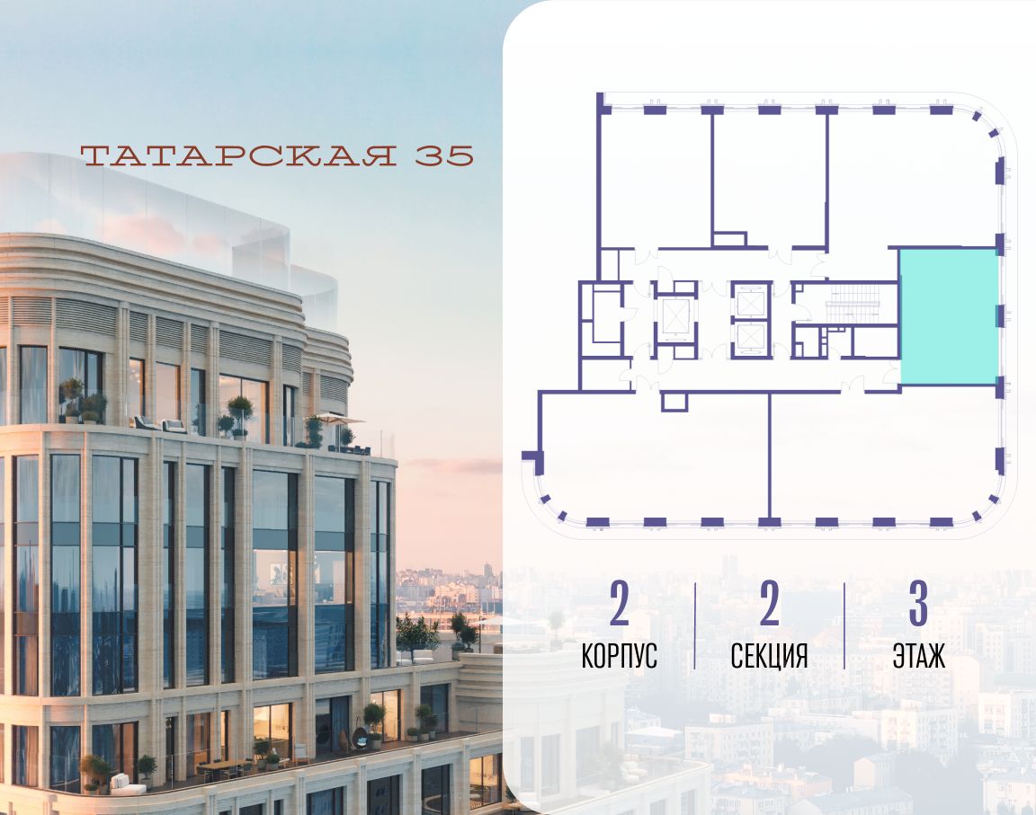ТАТАРСКАЯ, 35 - новая архитектурная доминанта Замоскворечья, достопримечательность на фотопанорамах исторического центра Москвы. Элитный дом, созданный для тех, кто умеет смотреть далеко вперед, мыслить масштабно и воплощать собственный сценарий жизни.
