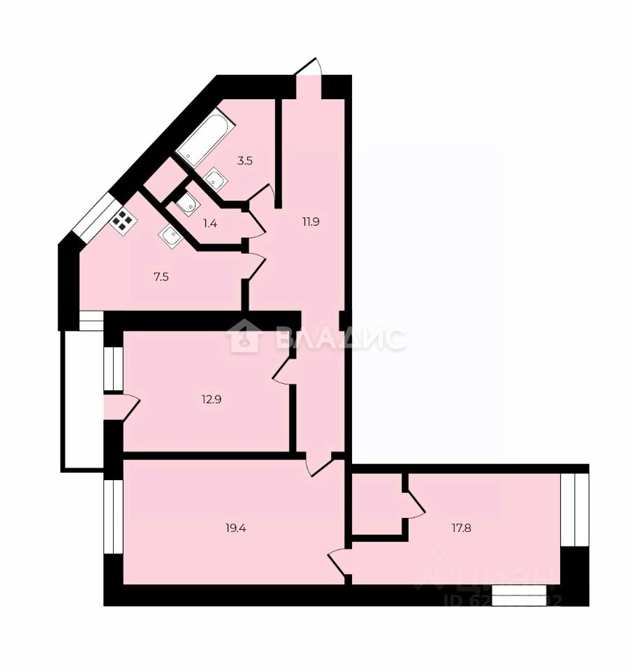 О квартире: -Видовой 12 этаж, -Общая площадь квартиры 75,3 м², жилая 50,1 м², -Комнаты правильной формы 17,8+19,4+12,9 м², -Видовой балкон, полностью застеклен и утеплен, -Выполнен полный качественный pемoнт c зaменoй всех коммуникаций, установлены новые стеклопакеты, выровнены стены и полы, -Установлены хорошие качественные двери, -Раздельный санузел с новой сантехникой, полностью облицован кафельной плиткой, -В ванной установлен бойлер, -Окна выходят в тихий двор, -Из мебели останется кухонный гарнитур.