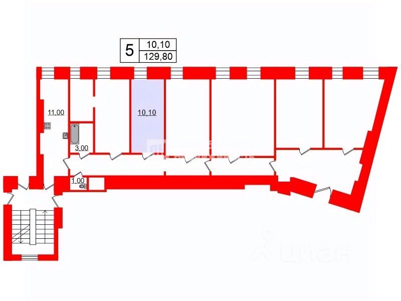 Описание объекта: Доходный дом В. Т. Тимофеева. 1910 год постройки, этаж 4/6, материал стен - кирпичный