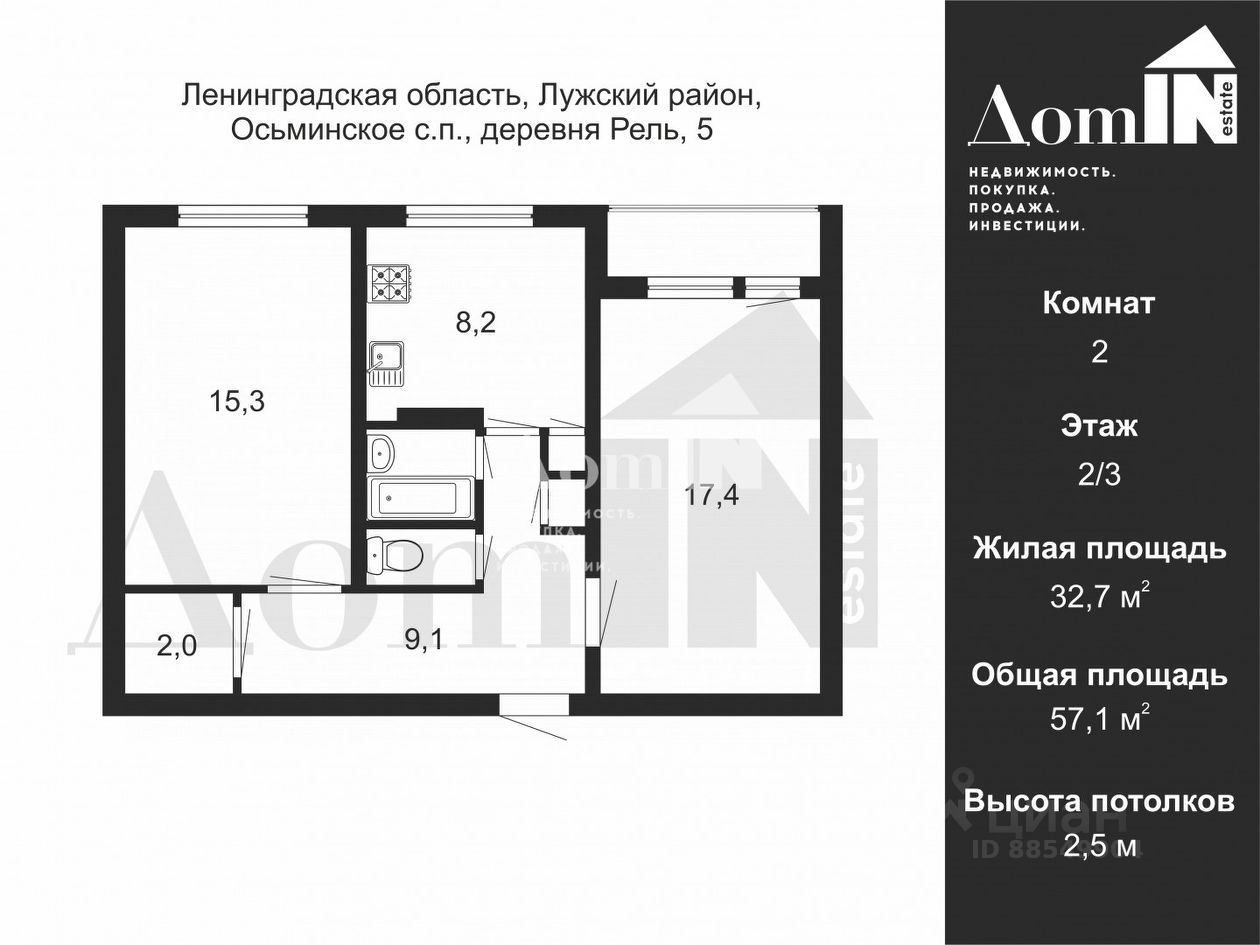 Арт. 129569589 Продам 2 комнатную квартиру в д. Рель. Общая площадь 57,1м2 Комнаты раздельные 15,3+17,7 Кухня 8,2м2 Лоджия Санузел раздельный. Один собственник Прямая продажа. Возможно применить материнский капитал в виде оплаты.