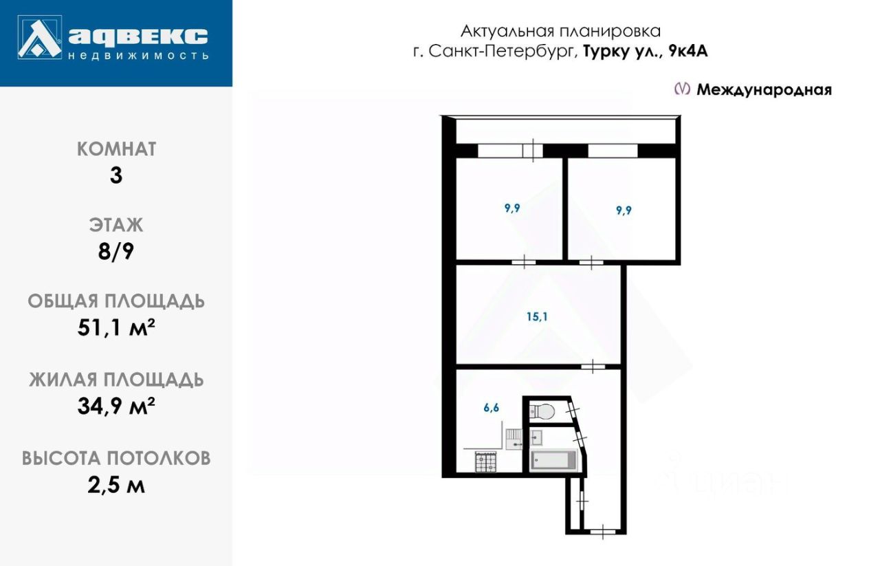продам 3-к, Турку, 9 корп. 49 900 000 ₽