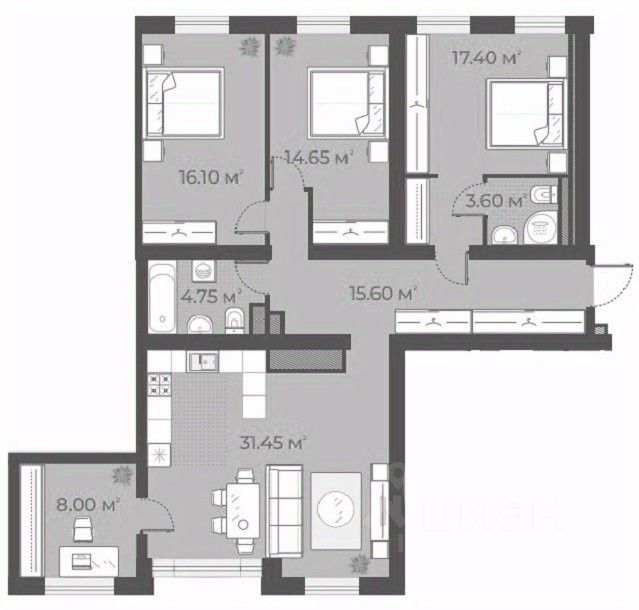 336979 Санкт-Петербург, Выборгский район, Зеленогорская улица, дом 3. В продаже эксклюзивная трёхкомнатная квартира в ЖК бизнес-класса Аура с подготовкой под чистовую отделку. Прекрасный вариант для большой семьи, ценящей простор и комфорт! Квартира включает в себя три изолированные спальни, просторную гостиную, объединенную с современной кухней и функциональный кабинет, гармонично дополняющий гостиную зону. Две ванные комнаты и два санузла добавят удобства в повседневной жизни. Все самые грязные и шумные работы уже позади, Вы можете смело воплощать в жизнь свои самые смелые дизайнерские задумки. Установлены качественные стеклопакеты, подведены все необходимые коммуникации.