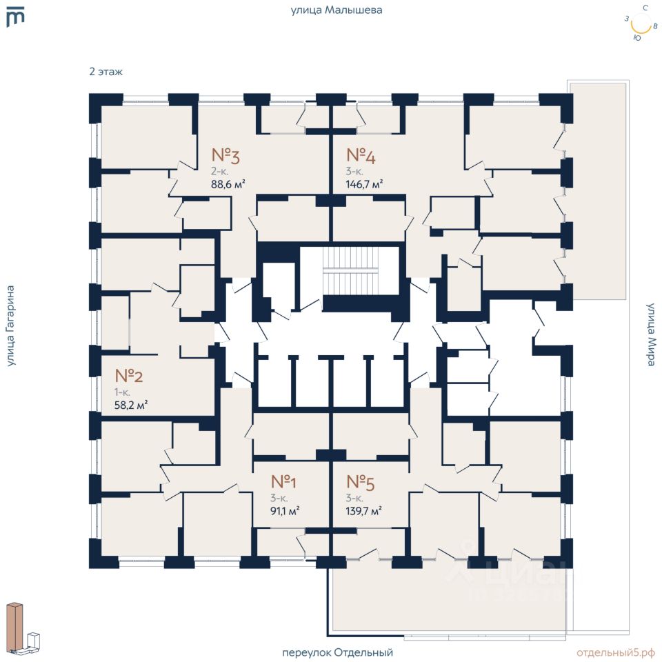 Жилой комплекс бизнес-класса ''Отдельный, 5'' рядом с УРФУ. Новый жилой комплекс бизнес-класса в Кировском районе Екатеринбурга (Втузгородок), расположенный в тихом квартале между улицами Малышева, Мира и Гагарина. Архитектурный ансамбль состоит из двух секций высотой 29 и 8 этажей, объединенных стилобатом с коммерческими помещениями и семейным кафе. Комплекс создан для комфортной и приватной жизни людей, ценящих простор, безопасность и современный уровень сервиса. Преимущества ЖК ''Отдельный, 5'' 1. Просторные и комфортные планировки бизнес-класса Минимальная площадь квартир начинается от 58 м². Предусмотрены варианты с просторными кухнями-гостиными, мастер-спальнями, кабинетами и функцинальными ванными. Теплая лоджия в каждой квартире.
