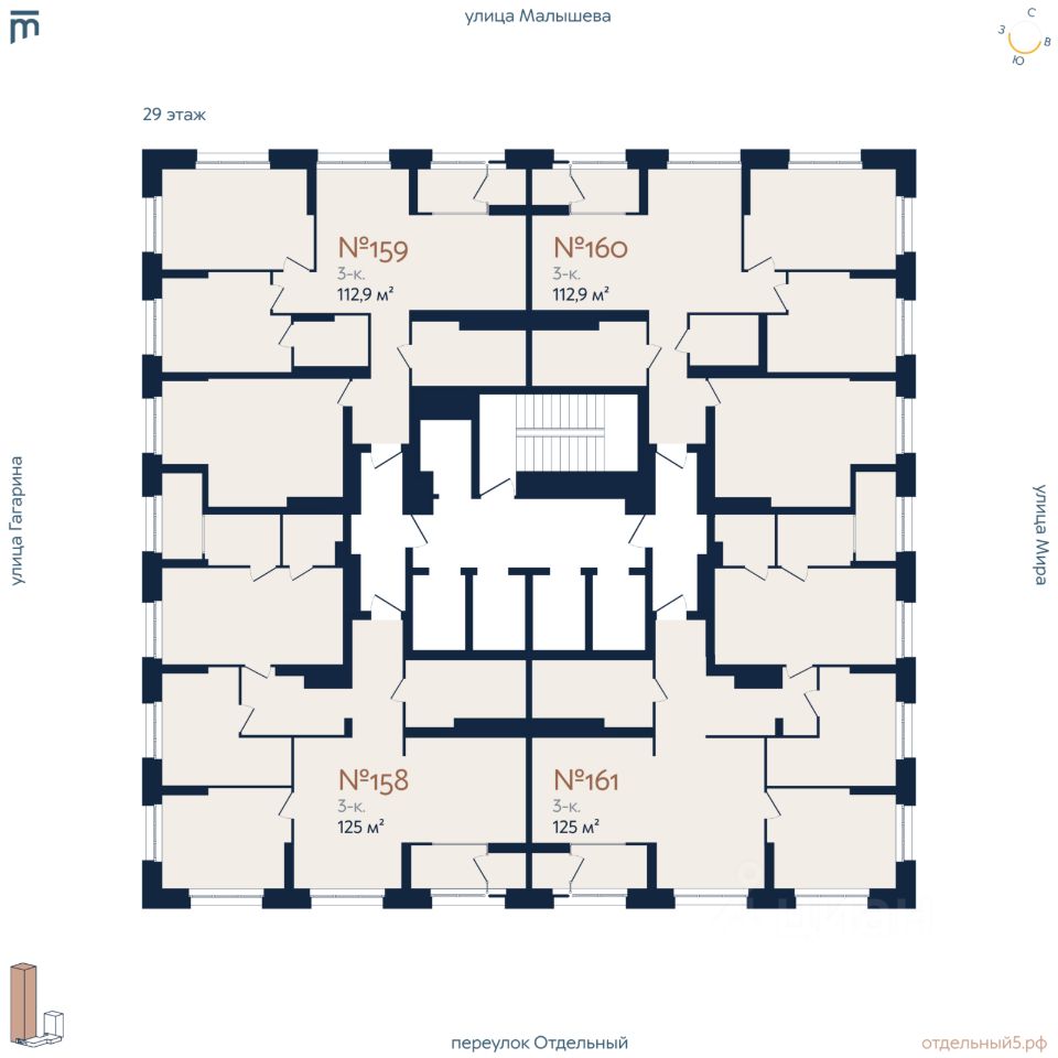 Жилой комплекс бизнес-класса ''Отдельный, 5'' рядом с УРФУ. Новый жилой комплекс бизнес-класса в Кировском районе Екатеринбурга (Втузгородок), расположенный в тихом квартале между улицами Малышева, Мира и Гагарина. Архитектурный ансамбль состоит из двух секций высотой 29 и 8 этажей, объединенных стилобатом с коммерческими помещениями и семейным кафе. Комплекс создан для комфортной и приватной жизни людей, ценящих простор, безопасность и современный уровень сервиса. Преимущества ЖК ''Отдельный, 5'' 1. Просторные и комфортные планировки бизнес-класса Минимальная площадь квартир начинается от 58 м². Предусмотрены варианты с просторными кухнями-гостиными, мастер-спальнями, кабинетами и функцинальными ванными. Теплая лоджия в каждой квартире.