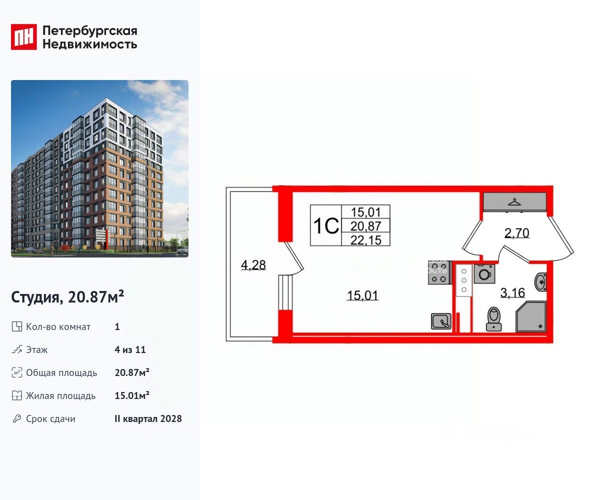 Общая площадь20,87 м2
